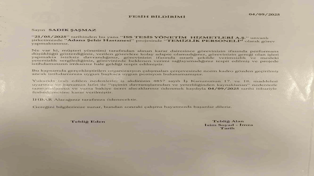 Adana’ya dönen eşini otogarda balonlar ve yazılar ile süslediği otomobiliyle karşılayan, şehir hastanesinde ISS Türkiye firmasına bağlı temizlik görevlisi Sadık Şaşmaz, çalıştığı hastaneden işten çıkartıldı. Yönetim, Şaşmaz’ın raporlu olduğu sırada böyle bir organizasyonu yaptığını öne sürdü ancak organizasyonu rapor almadan bir gün önce yaptığını belirten Şaşmaz, "Hanımcılık kazanacak dedim, hanımcılık kazandı ama ben işsiz kaldım" dedi.