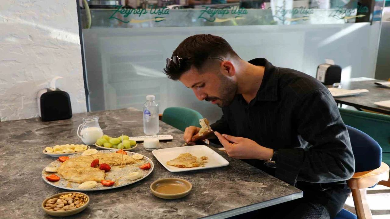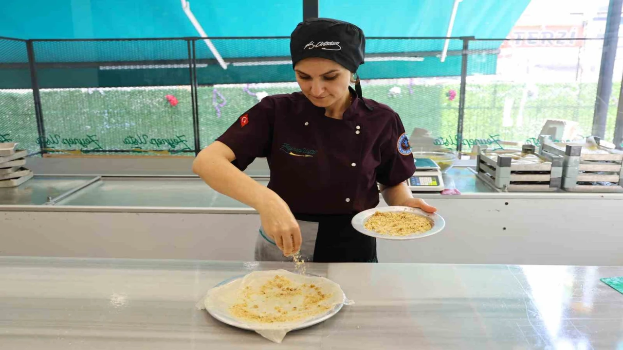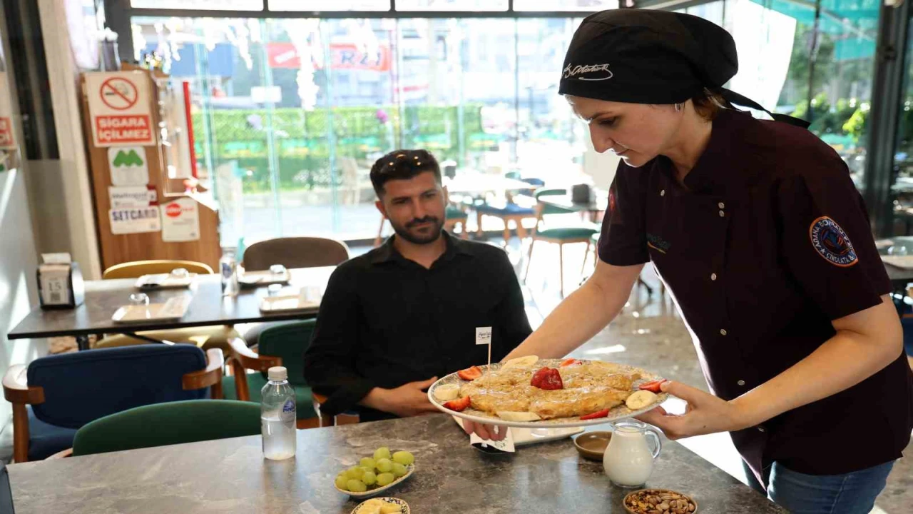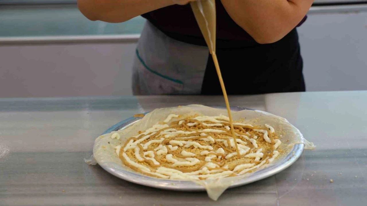 Adanalı tatlıcının, eşinin damak zevkinden yola çıkarak hazırladığı ballı, tahinli, cevizli ve fıstıklı katmer yoğun ilgi görüyor