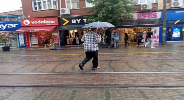 Eskişehir’de etkili olan ceviz büyüklüğündeki dolu yağışı kent yaşamını olumsuz etkilerken, o anlarda dışarıda bulunan vatandaşlar zarar görmemek için kendilerini ve eşyalarını korumaya çalıştı.