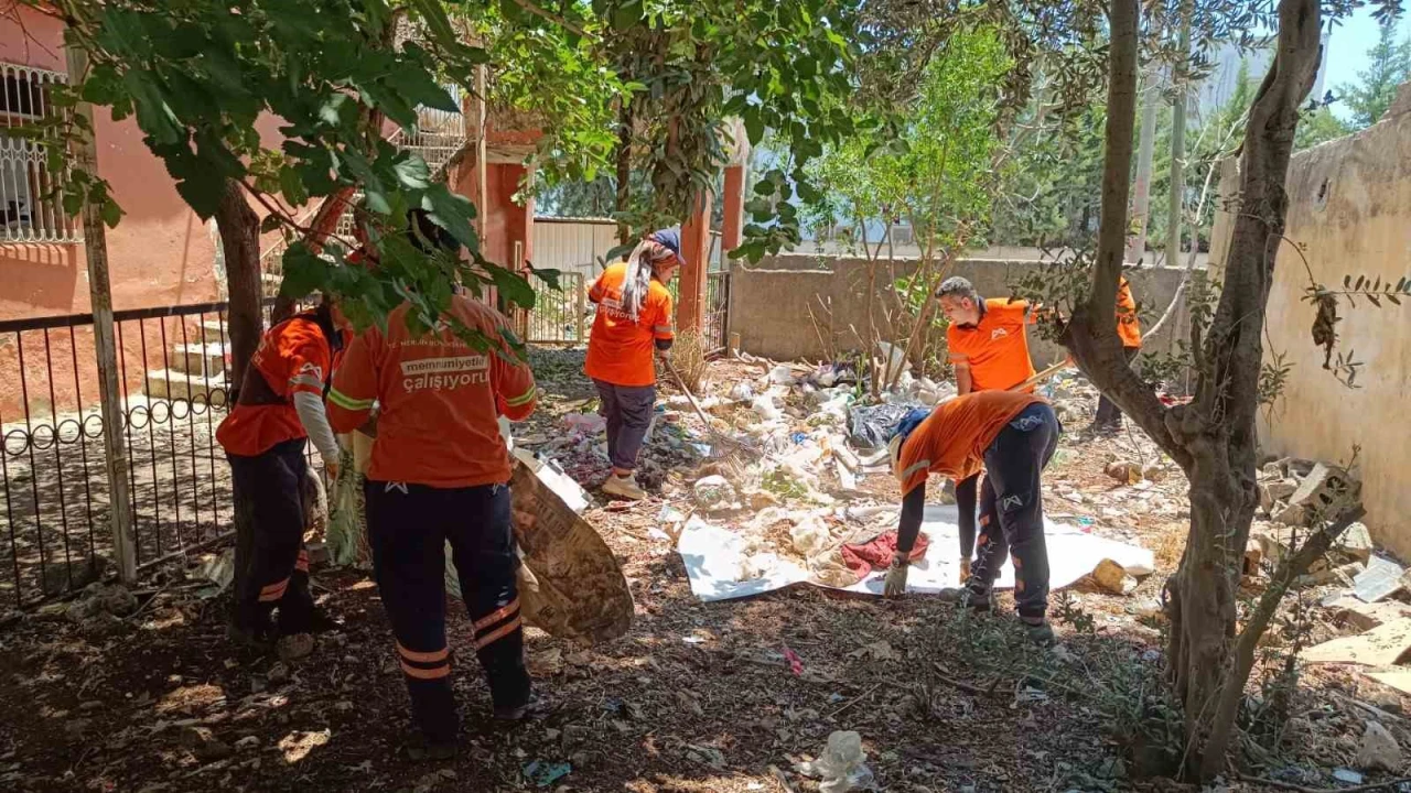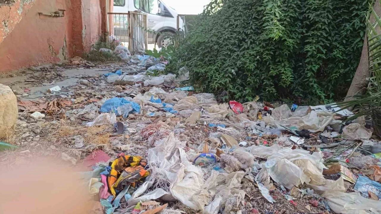 Mersin’in Tarsus ilçesinde eski boş bir evin bahçesinden kamyon dolusu çöp çıktı.