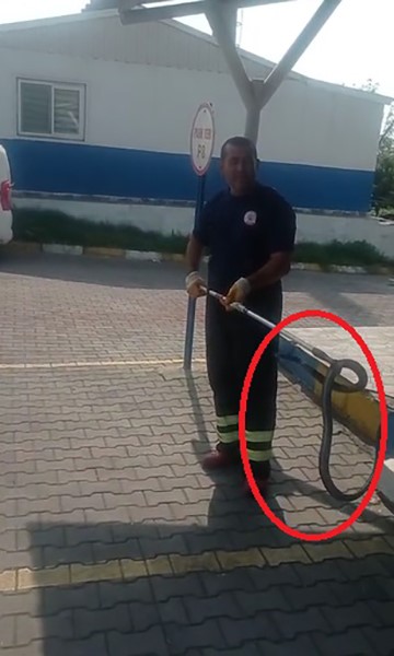 HATAY’DA BİR FABRİKAYA GİREN YILANI, İTFAİYE EKİPLERİ ÖZEL APARAT YARDIMIYLA YAKALADI.