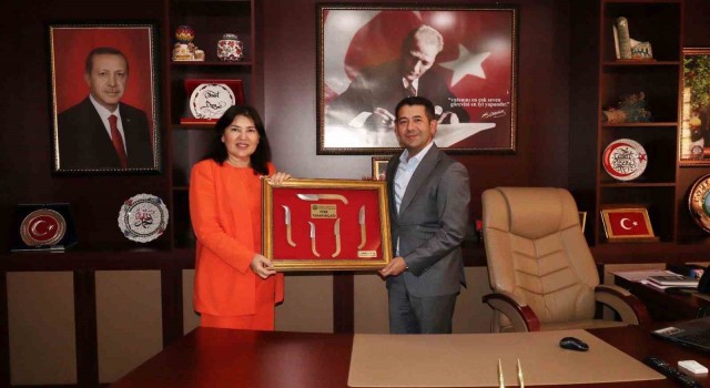 Ziyaretin sonunda Başkan Özen, Karamık’a Tapan Bıçağı hediye etti.