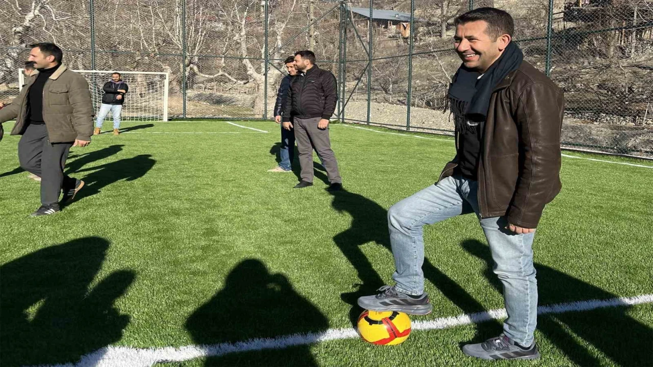 Adana’nın Feke ilçesinde yapımı tamamlanan modern halı sahalar açıldı.