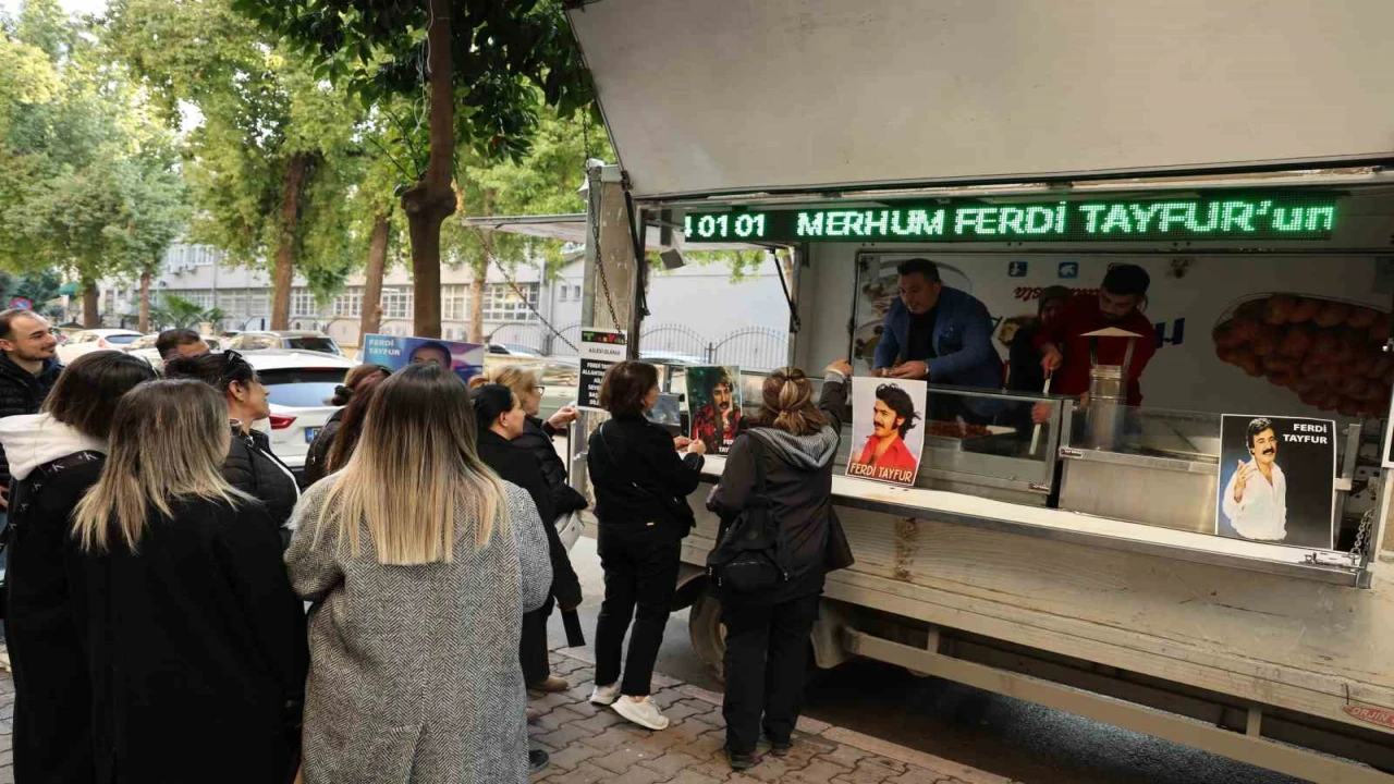 Adana’da Ferdi Tayfur hayranı tekstilci Ufuk Doyuran ise merkez Seyhan ilçesi Reşatbey Mahallesi’ndeki mağazasının önünde 5 bin kişiye lokma tatlısı dağıttı. Ferdi Tayfur’un fotoğraflarının yer aldığı dövizler tatlı tezgahına asılırken mağazadan da Ferdi Tayfur’un müzikleri çalındı.