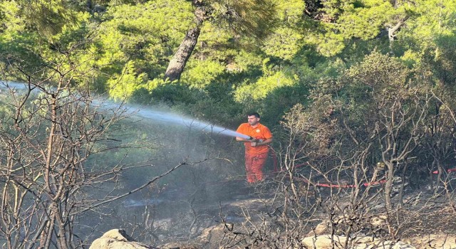Muğla’nın Fethiye ilçesinde zeytinlik alanda çıkan ve rüzgarın etkisiyle ormanlık alana sıçrayan yangın, havadan ve karadan yapılan müdahale ile kontrol altına alındı.