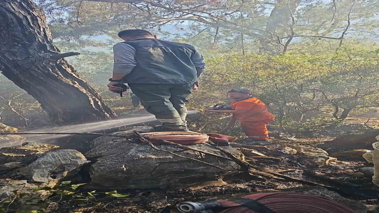 ANTALYA'NIN FİNİKE İLÇESİNDE ÇIKAN ORMAN KONTROL ALTINA ALINDI. YANGINDA 2.5 HEKTARLIK ALAN ZARAR GÖRDÜ
