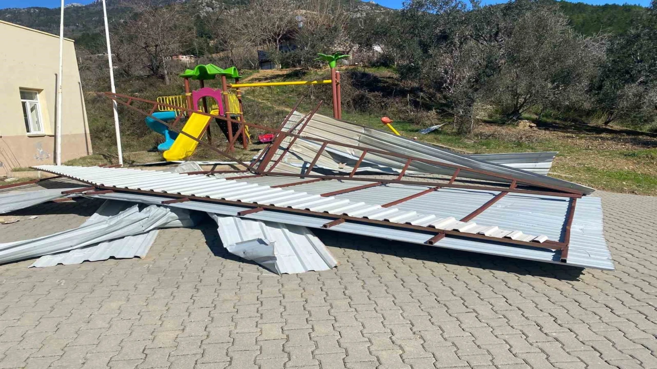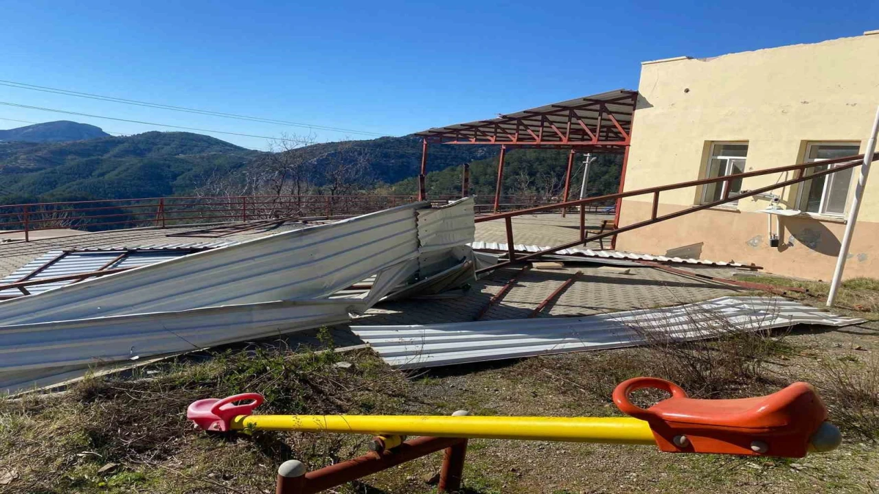 Antalya’nın Gazipaşa ilçesinde iki gündür etkili olan fırtına, Ilıca Mahallesi Köy Konağı’nın çatısını uçurdu. Çatının metal malzemelerini binadan ayıran fırtına, çatının malzemelerini bir kağıt gibi etrafa savurdu.