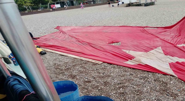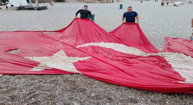 Antalya’da Konyaaltı sahilinde dalış yapan dalgıçlar su altında tesadüfen karşılaştıkları manzara karşısında hayrete düştü. Dalış sırasında gruptan bir kişinin dikkatini çeken cismi inceleyen dalgıçlar dev Türk bayrağı ile karşılaştı. Kıyıdan 250 metre mesafede ve 26 metre derinlikte bulunan yaklaşık 8 metreye 12 metre ebatlarında olan bayrağı bulunduğu yerden çıkartmak için çalışma başlatan dalgıçlar ilk olarak bayrak üzerinde ki deniz tabanı mili temizlendi. Bayrağın büyüklüğü nedeniyle su yüzeyine çıkarmak için dalgıçlar paraşüt adı verilen yardımcı ekipmandan faydalandı.