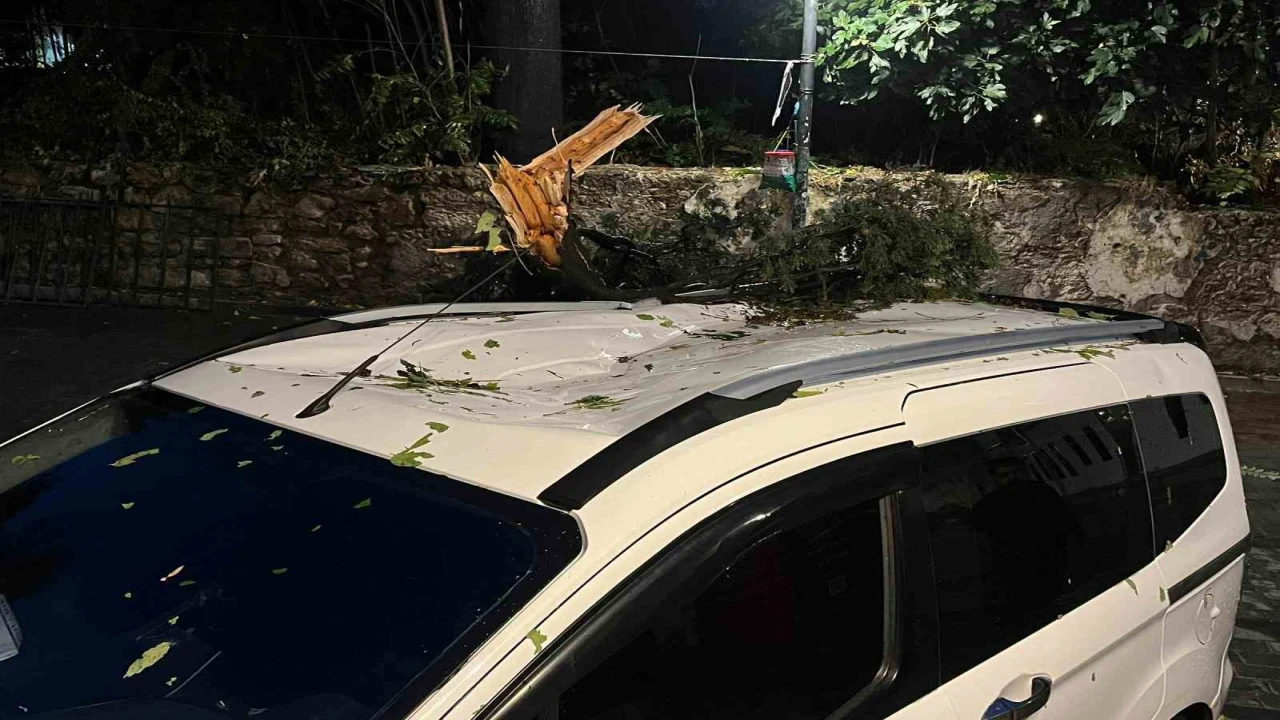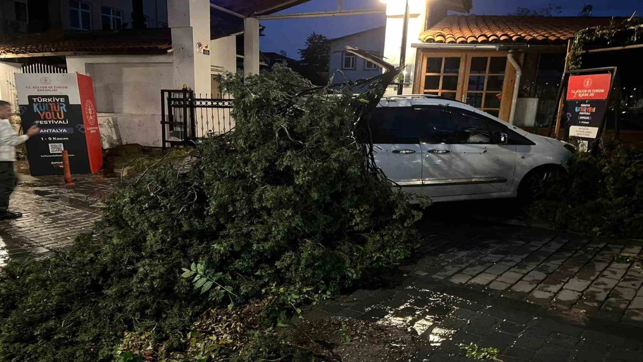 Antalya’da etkili olan fırtınanın etkisiyle kırılan ağaç park halindeki aracın üzerine devrildi.