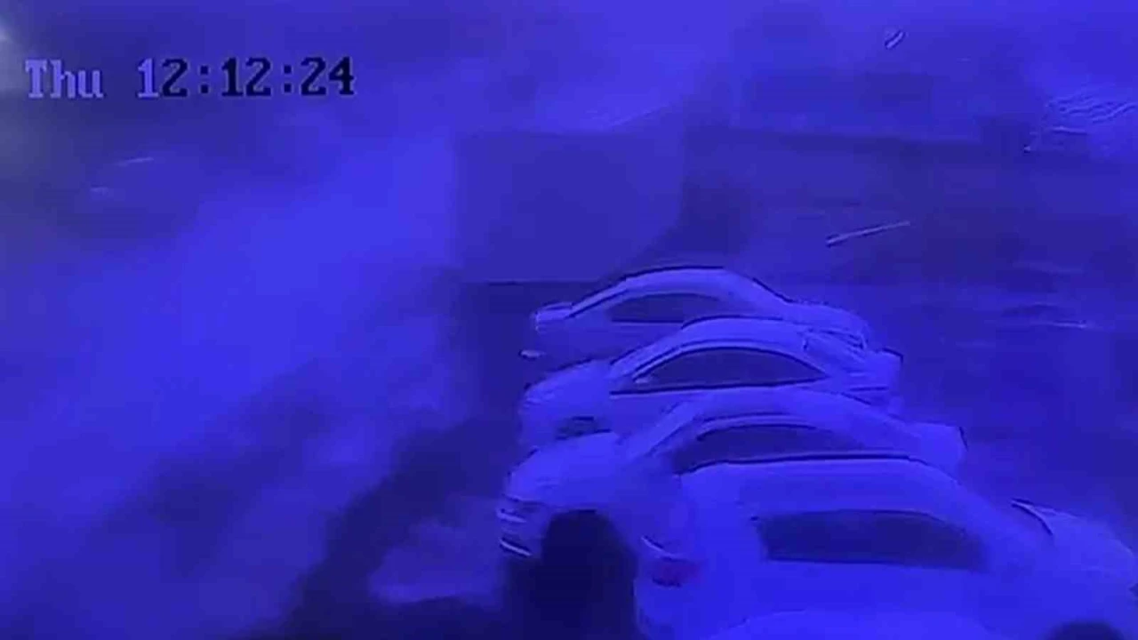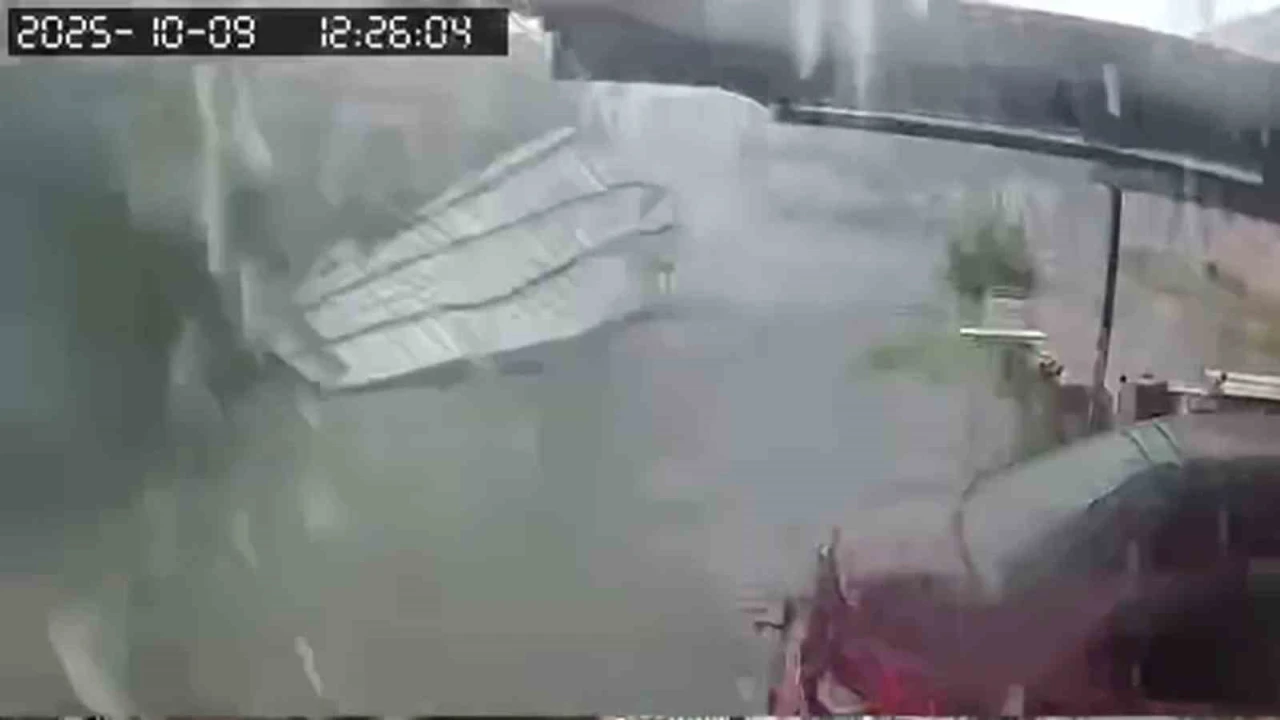 HATAY’DA KUVVETLİ FIRTINANIN ÇATIYI VE KONTEYNERİ UÇURDUĞU ANLAR GÜVENLİK KAMERASINA YANSIDI.