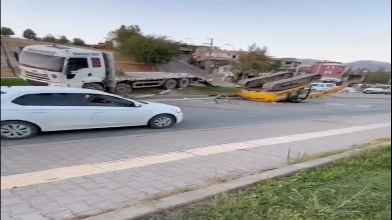 Kahramanmaraş’ta dorsedeki iş makinesi indirilmeye çalışılan tırın freni boşaldı. Tır, park halindeki otomobile vurup refüje çıkarken, o anlar kameraya saniye saniye yansıdı.