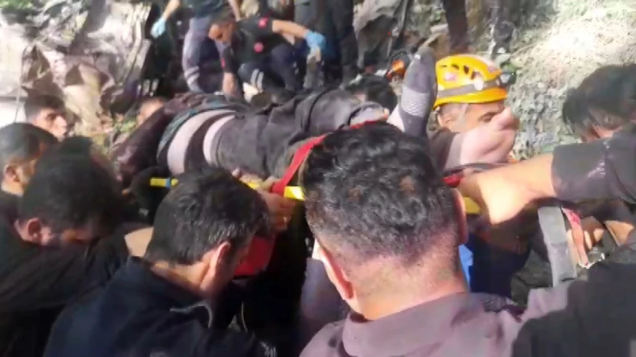 HATAY'IN DEFNE İLÇESİNDE FRENİ ARIZALANAN HAFRİYAT KAMYONU UÇURUMDAN UÇTU.