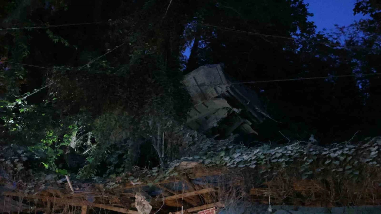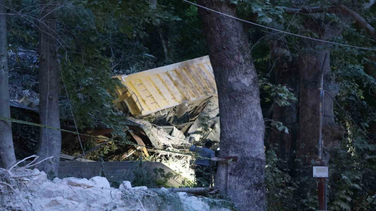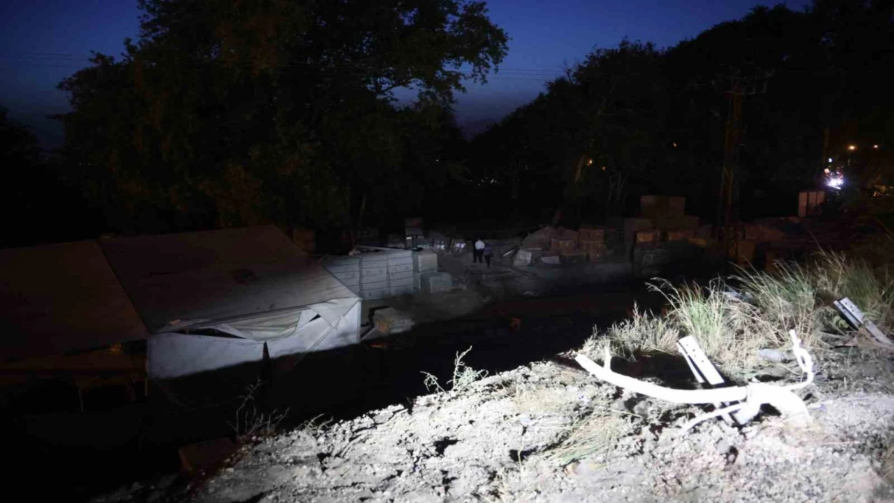 - İş yerine çarpıp uçurumdan yuvarlanan kamyon, güvenlik kulübesini biçti