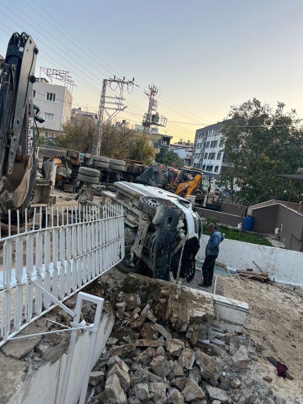 Kaza, Belen ilçesi Halilbey Mahallesi’nde yaşandı. Sürücüsünün direksiyon hakimiyetini kaybettiği beton mikseri pompasının bulunduğu kamyon, önce FORD marka pikaba ardından da kepçeye çarparak durabildi.
