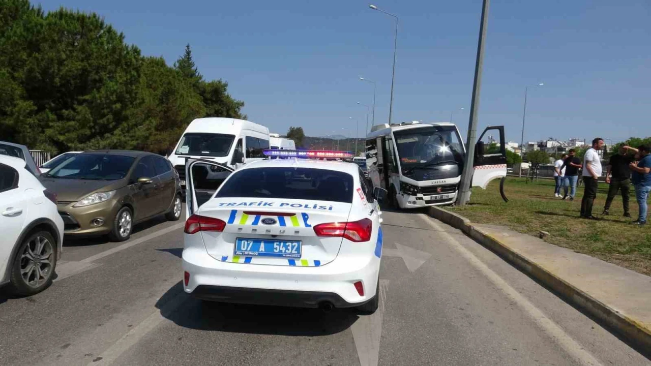 Antalya’da freni patlayan halk minibüsü önce kırmızı ışıkta bekleyen araca, ardından refüjdeki aydınlatma direğine çarptı. Kazada minibüs sürücüsü ve araçta bulunan 3 yolcu yaralandı.