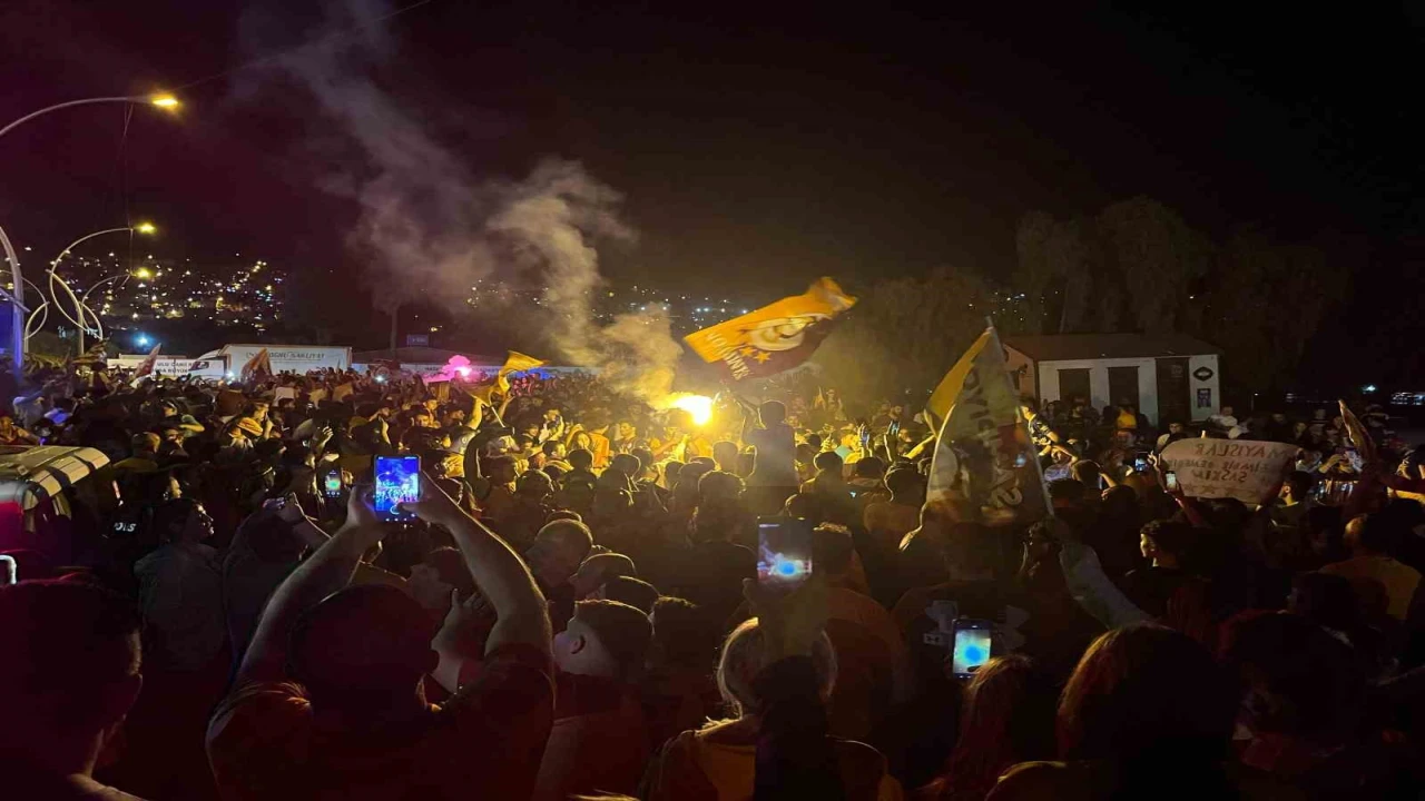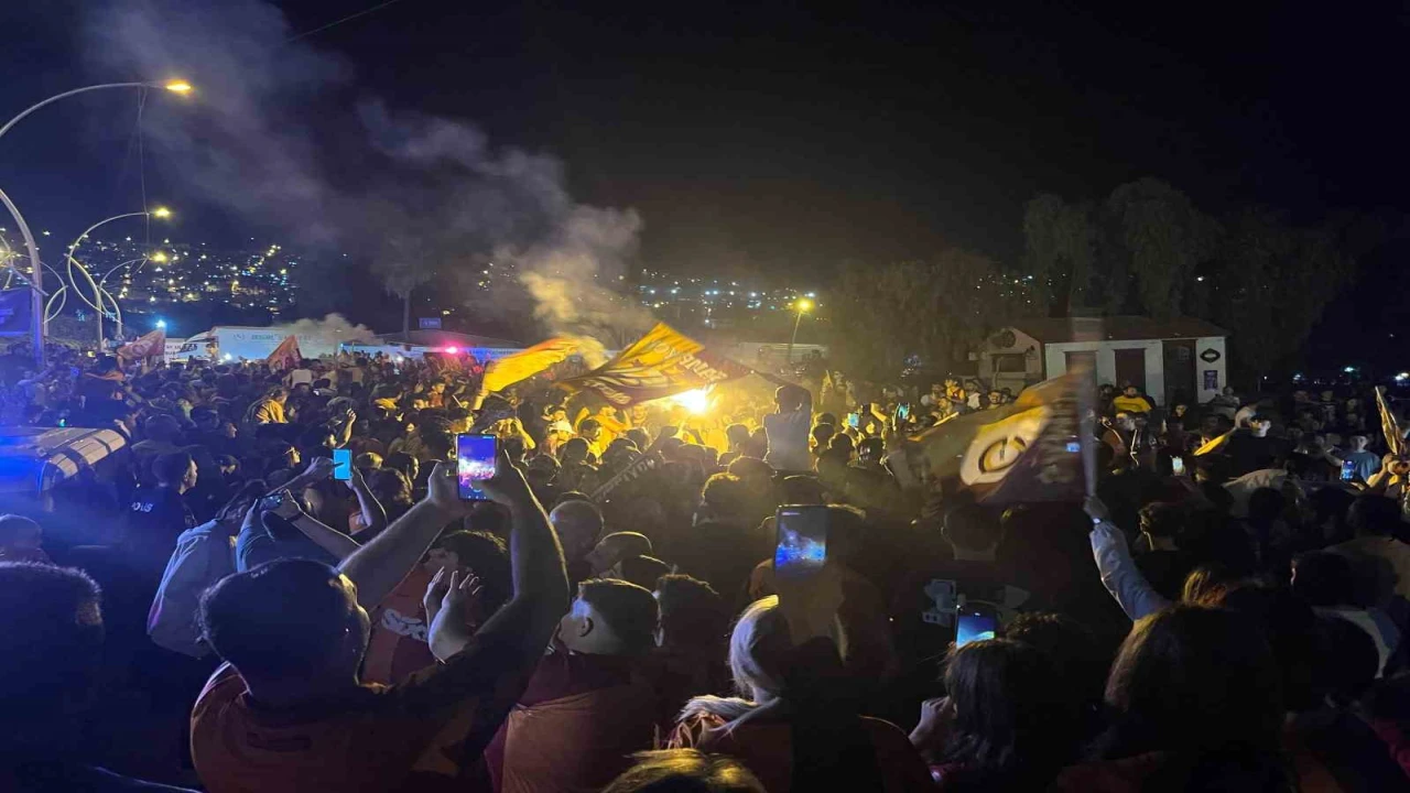 Ellerindeki meşaleler ve Galatasaray bayraklarıyla marşlar söyleyen taraftarlar, meydanı bayram havasına çevirerek 25. şampiyonluğu coşkuyla kutladı.
