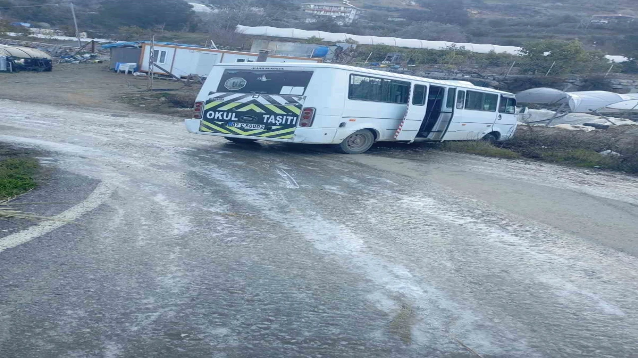 Antalya’nın Gazipaşa ilçesinde, buzlu yolda kontrolden çıkan okul servisi devrilmekten son anda kurtuldu. İçinde 3 lise öğrencisinin bulunduğu araç, sürücünün dikkati sayesinde facianın eşiğinden döndü.