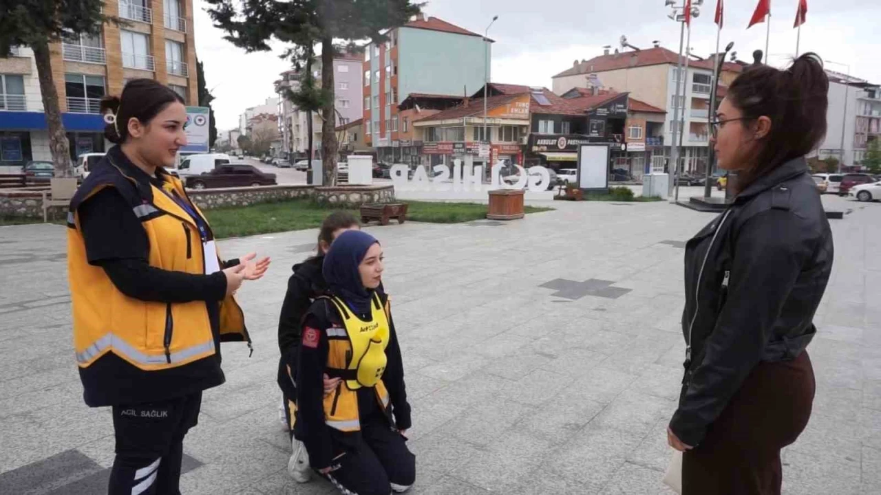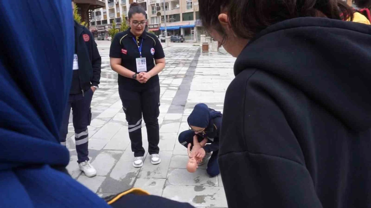 Meydanda açılan stantta, öğrenciler yoldan geçen vatandaşları durdurarak ilk yardım eğitimi konusunda bilgilendirme yaptı. Özellikle solunum yolunu tıkayan yabancı cisimlere müdahalede kullanılan Heimlich manevrası gibi hayati öneme sahip uygulamaları vatandaşlara birebir gösteren öğrenciler, aynı zamanda neden bu tür bilgilerin herkes tarafından bilinmesi gerektiğini de detaylı şekilde anlattı.