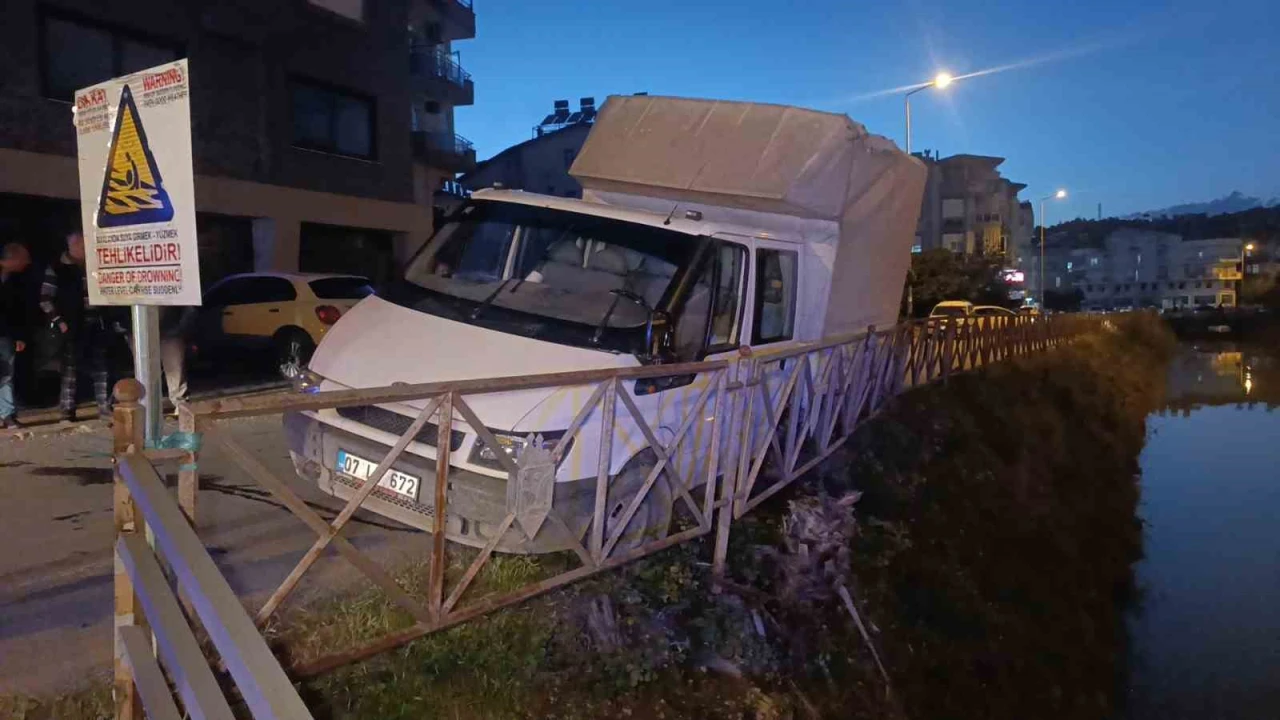 Antalya’nın Manavgat ilçesinde park halindeki otomobile çarptıktan sonra uzaklaşmak isteyen kamyonet, demir korkuluklar sayesinde sulama kanalına düşmekten kurtuldu. Kazanın ardından çevredeki vatandaşlar tarafından güçlükle araçtan indirilen araç sürücüsü, 112 Sağlık ekibinin olay yerindeki müdahalesinin ardından hastaneye kaldırıldı. Hastanede kan testi ile yapılan kontrolde 3,35 promil alkollü çıkan kamyonet sürücüsünün ehliyetinin olmadığı, gırtlak kanseri tedavisi gördüğü ve boğazında açılan delikten nefes alabildiği bildirildi.