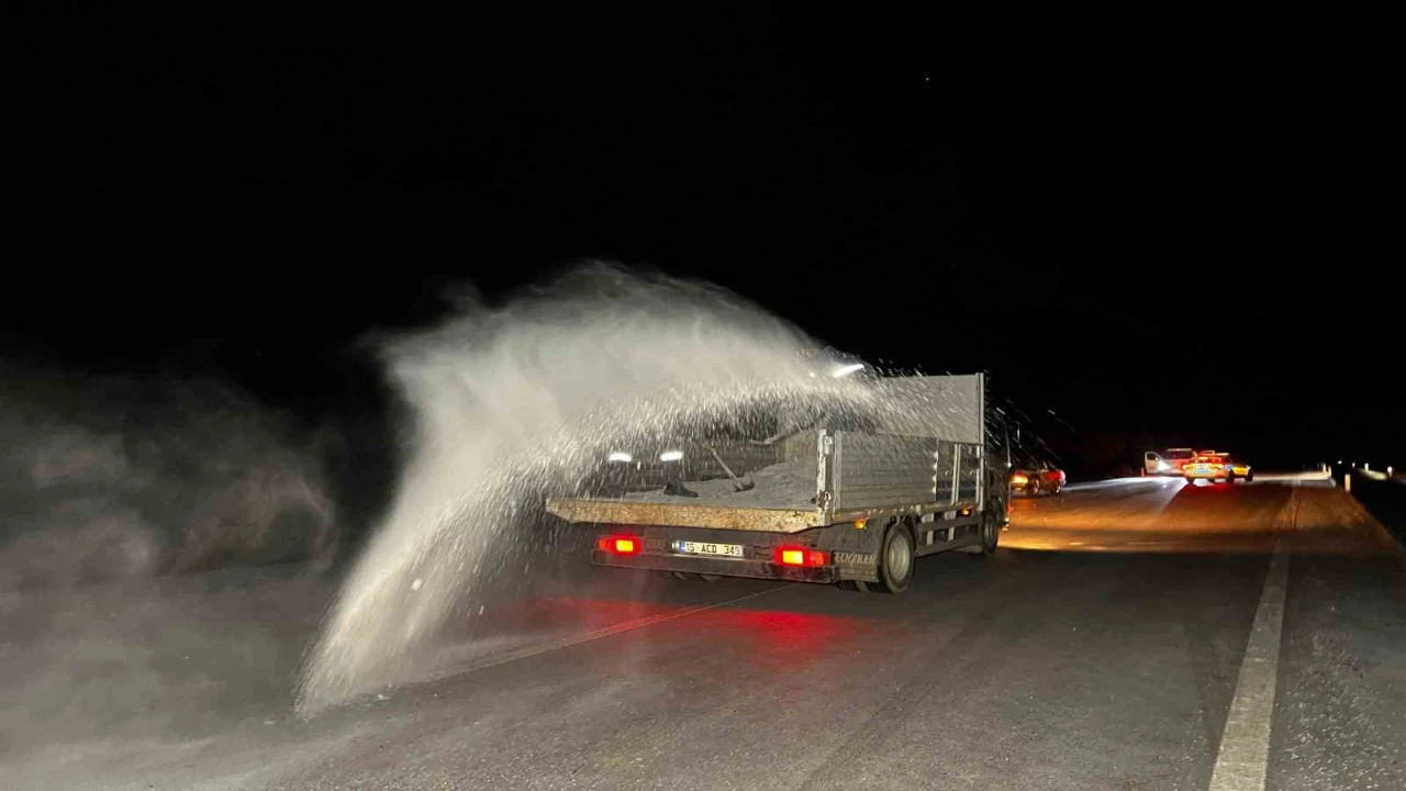 Gizli buzlanma nedeniyle yol trafiğe kapatıldı