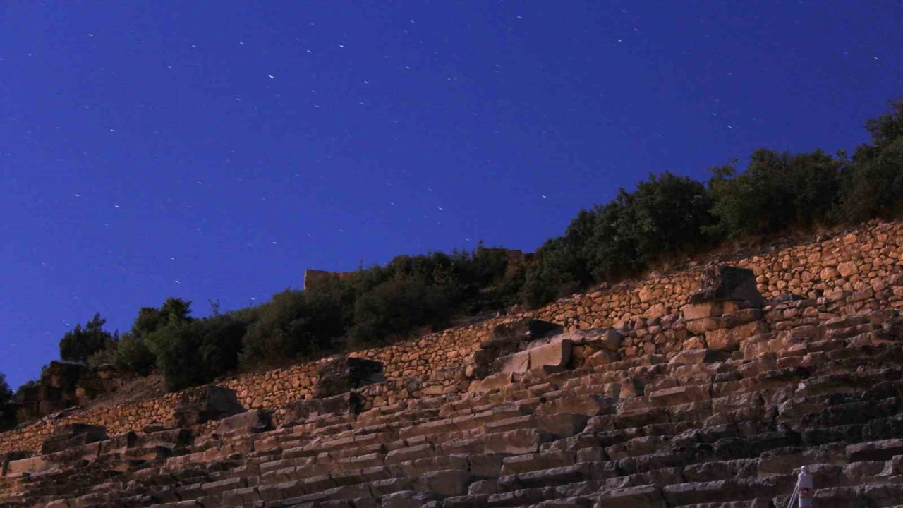 Tarihte ’gladyatörler şehri’ olarak bilinen Burdur’un Gölhisar ilçesindeki Kibyra Antik Kenti’nde Perseid meteor yağmuru sırasında görsel şölen yaşandı.