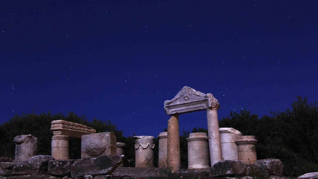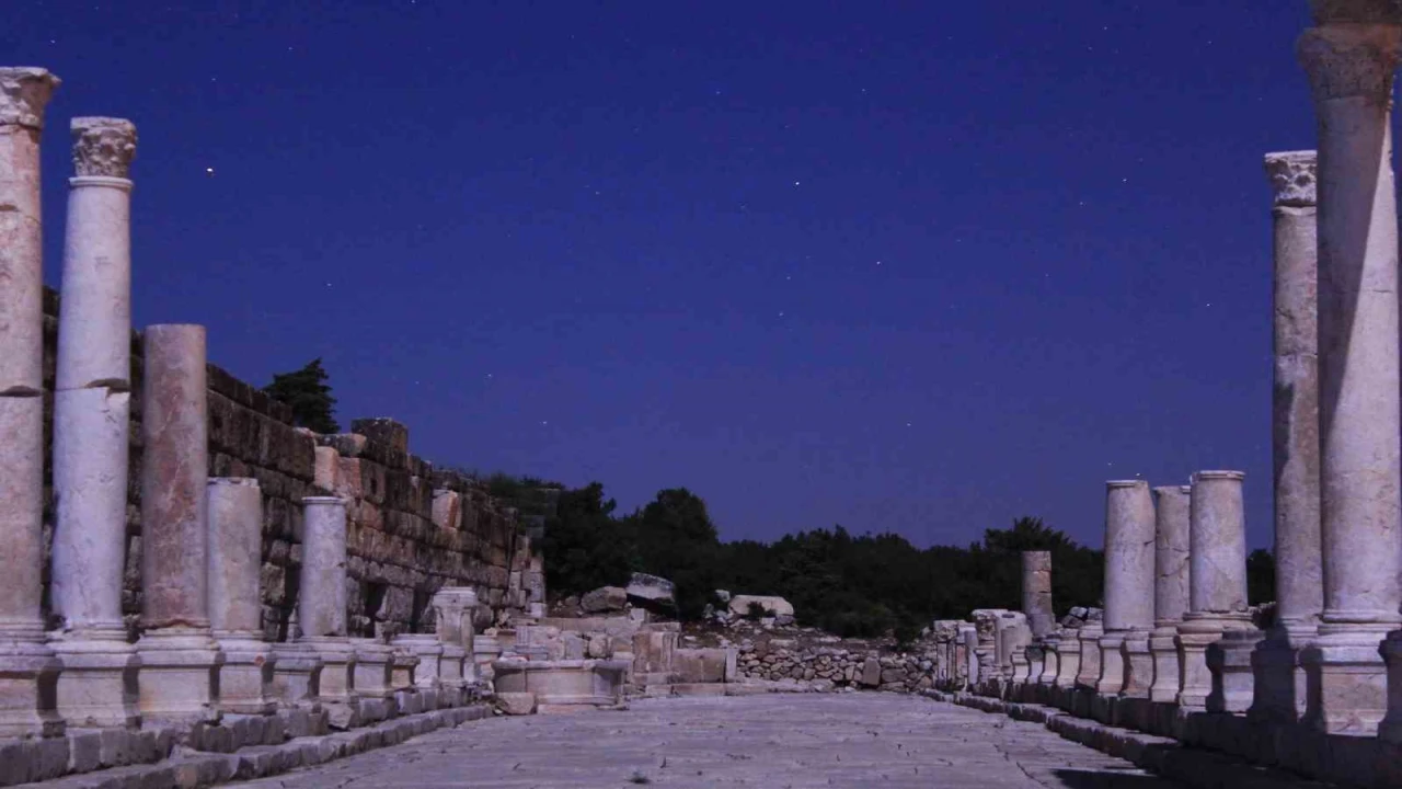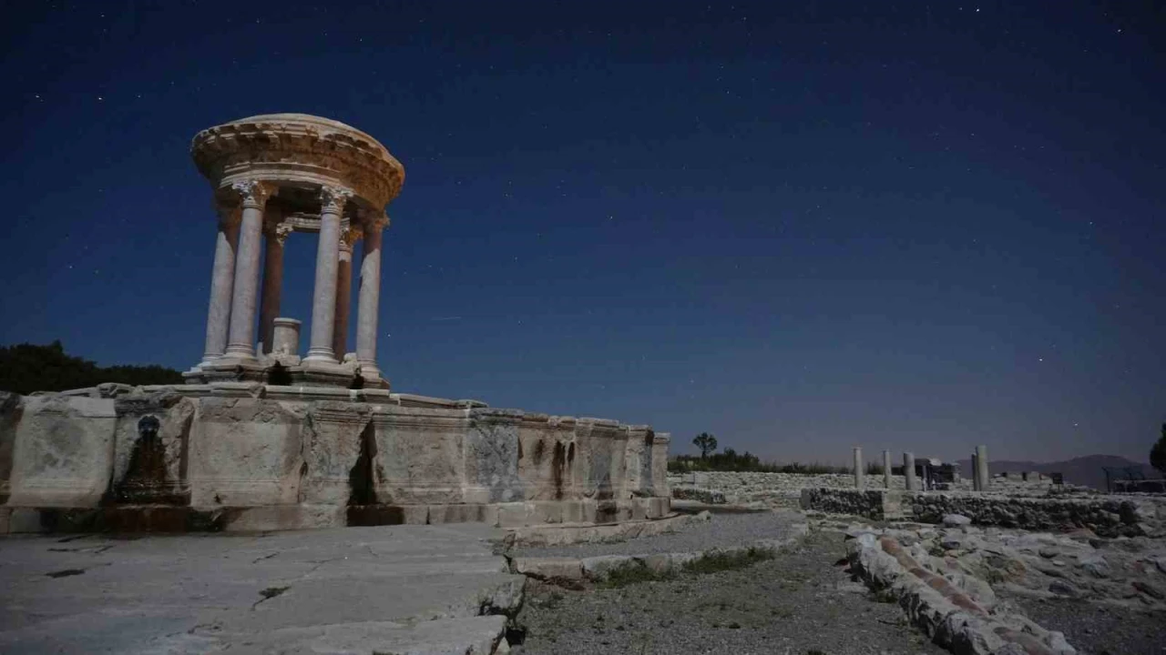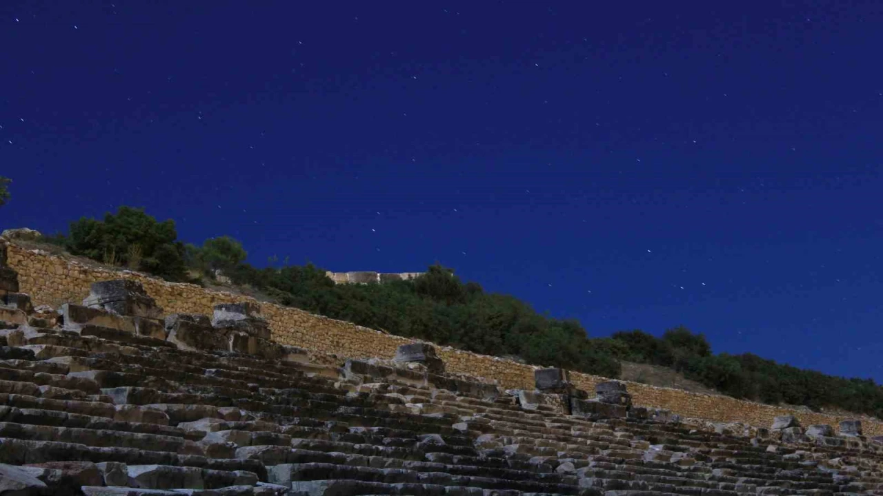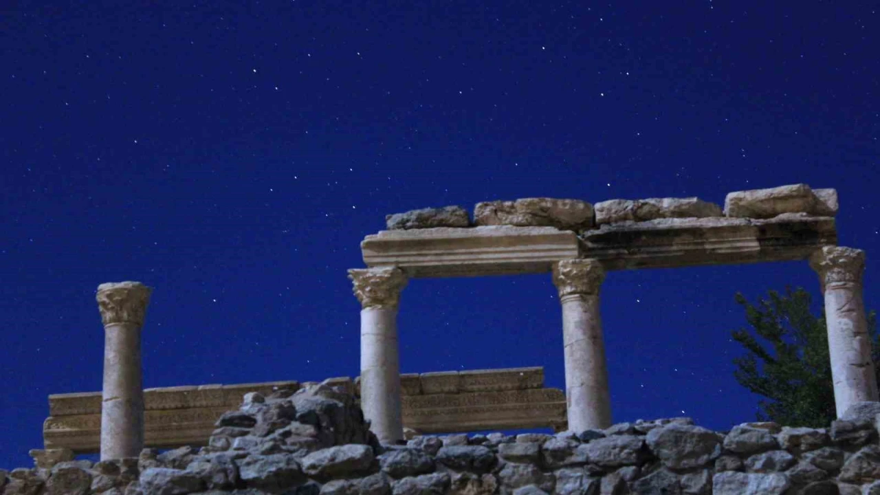 TARİHTE GLADYATÖRLER ŞEHRİ OLARAK BİLİNEN, ANITSAL ÇEŞMESİ, MEDUSA MOZAİĞİ, ODEON VE STADYUMUYLA DİKKAT ÇEKEN BURDUR’UN GÖLHİSAR İLÇESİNDEKİ KİBYRA ANTİK KENTİ, 12-13 AĞUSTOS GECESİ DÜNYANIN BİRÇOK YERİNDE İZLENEBİLEN PERSEİD METEOR YAĞMURUNUN YAŞANDIĞI GÜNLERDE, GECE KARANLIĞINDA FOTOĞRAFLANDI.
