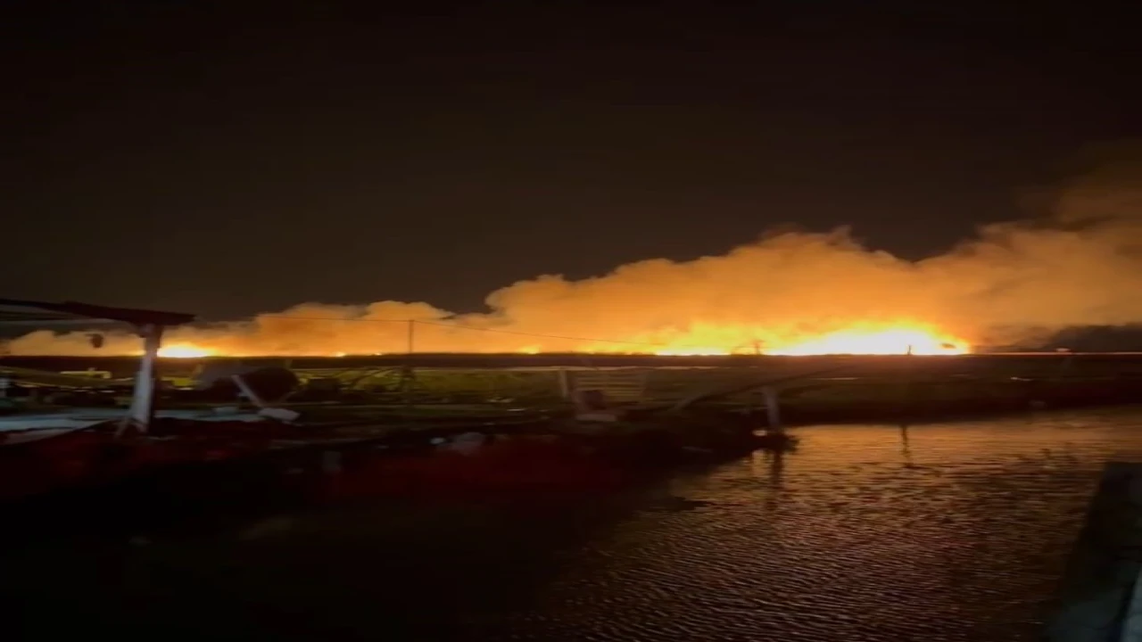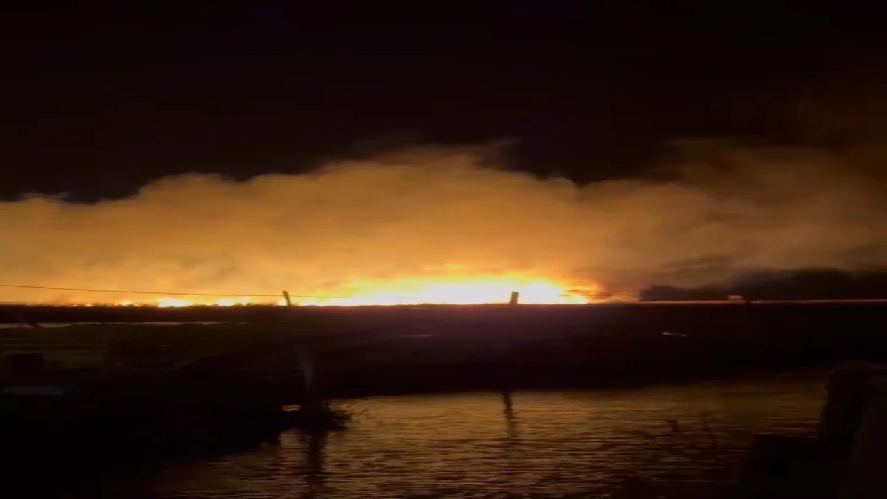 MERSİN’İN SİLİFKE İLÇESİNDE KORUMA ALTINDA BULUNAN GÖKSU DELTASI'NDA SAZLIK ALANDA HENÜZ BELİRLENEMEYEN NEDENLE YANGIN ÇIKTI.
