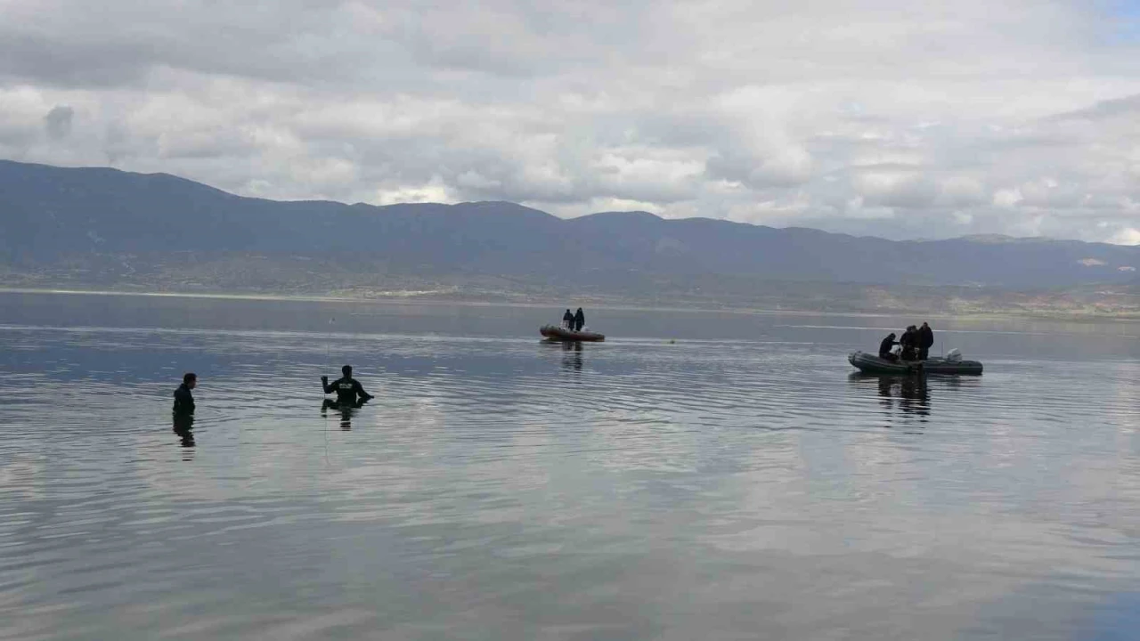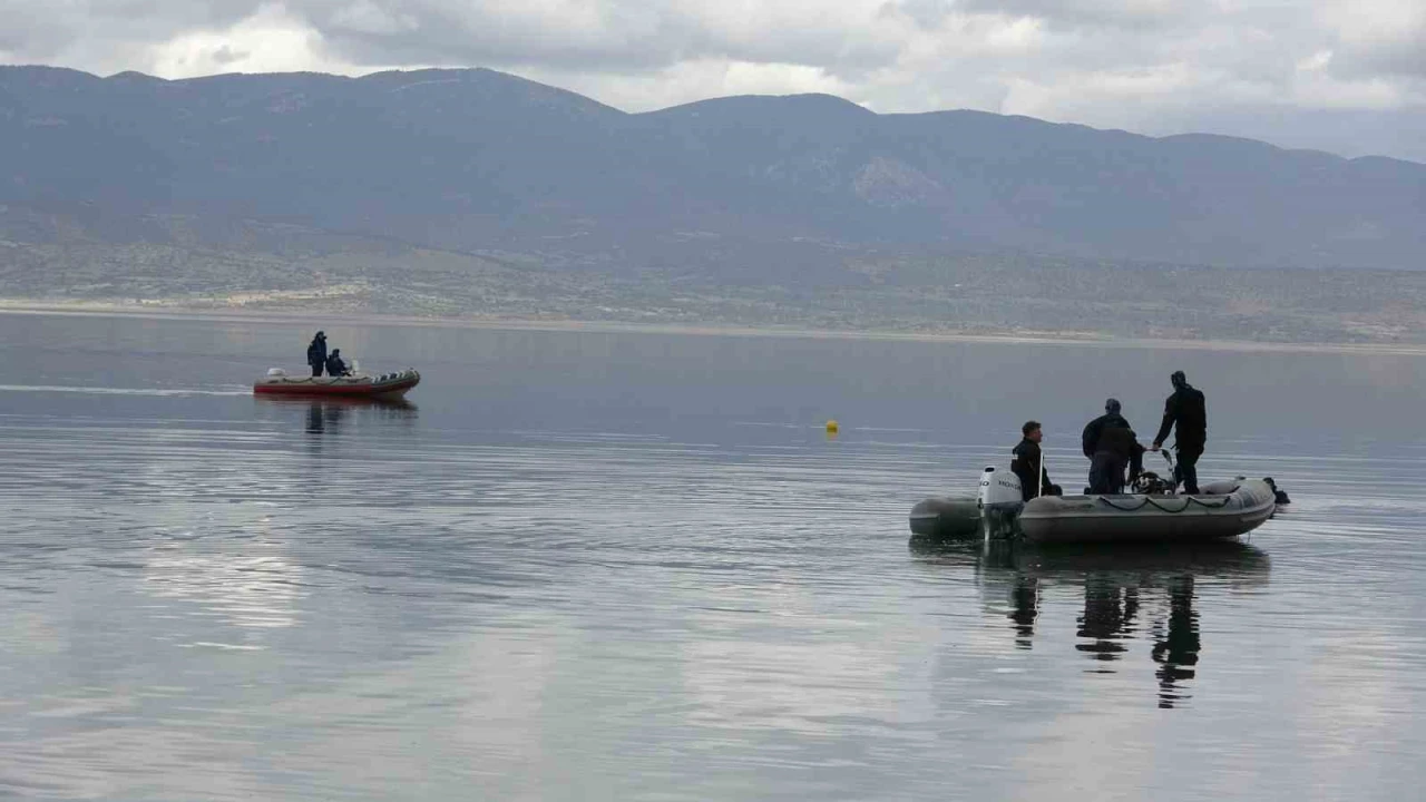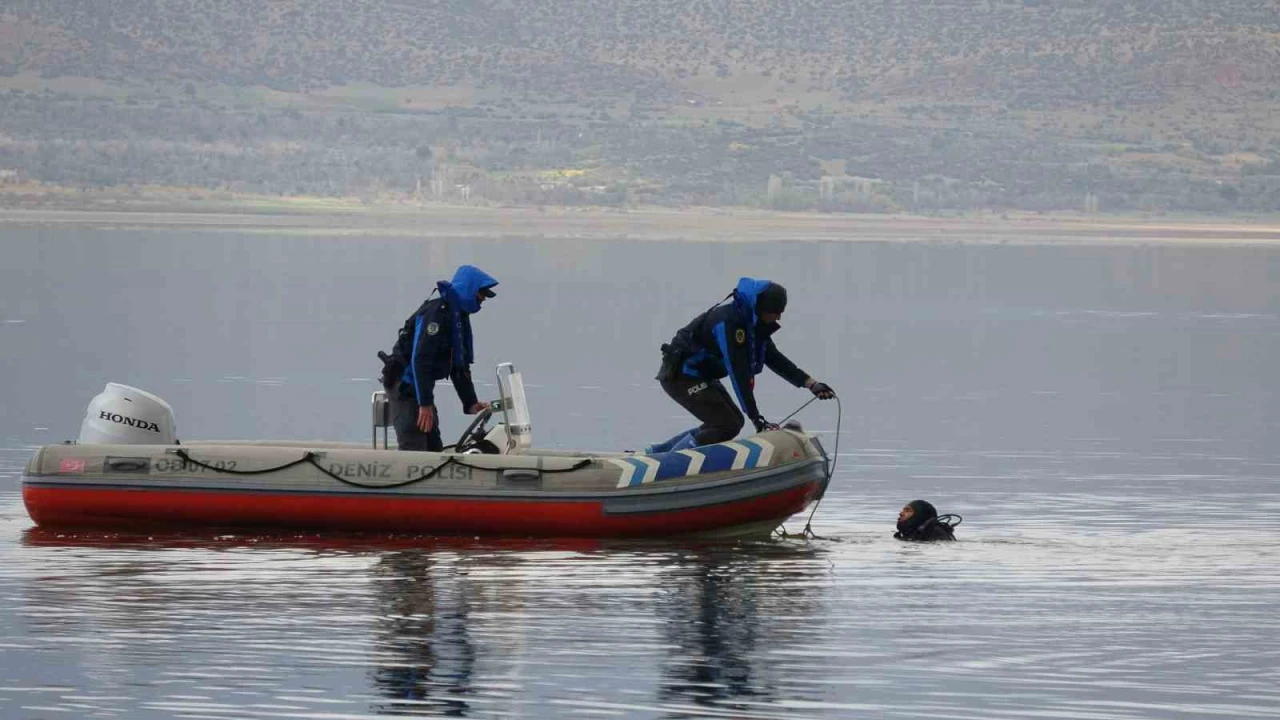 Antalya, Konya ve İzmir’den sevk edilen dalgıç polisler gölde arama çalışmalarına başladı.