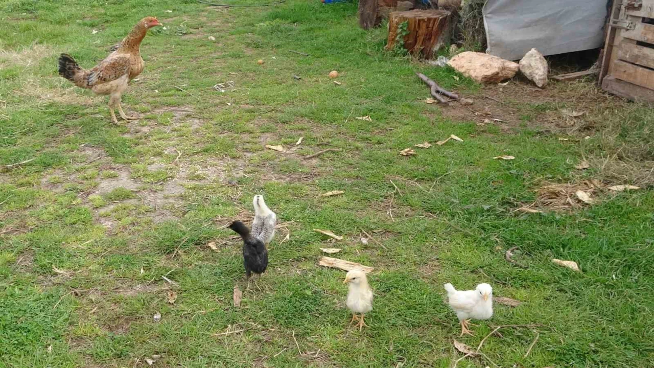 MERSİN'DE DÜNYAYA GELEN BİR CİVCİV, KAFASINDA BULUNAN AY YILDIZ FİGÜRÜYLE GÖRENLERİN İLGİSİNİ ÇEKTİ.