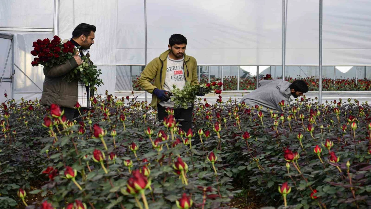 Soğuk kış günlerinde binbir zahmetle seralarda yetiştirilen kırmızı güller, yoğun mesainin ardından sevgililerin yüzünü güldürmeye hazırlanıyor. Sevgililer Günü öncesi Akdeniz ilçesindeki seralarda ihtiyaca karşılık vermek için tam kapasite çalışan üreticiler, 14 Şubat için gül mesaisini tamamladı. İlçeye bağlı Akdam Mahallesi’ndeki seralarda sabah erken saatlerde gül hasat eden işçiler, soğuk hava depolarında beklettikten sonra gülleri paketleyerek satışa hazır hale getiriyor. 14 Şubat öncesi üreticiler son hasatları yaparken, esnaf da tezgahlarında sergileyecekleri en güzel gül ve çiçekleri en uygun fiyata almak için mezatta adeta birbirleriyle yarıştı. Özellikle kırmızı güllerin rağbet gördüğü mezatta, esnaf kırmızı güllerin yanı sıra diğer çiçek ve süs bitkilerinden de satın aldı.
