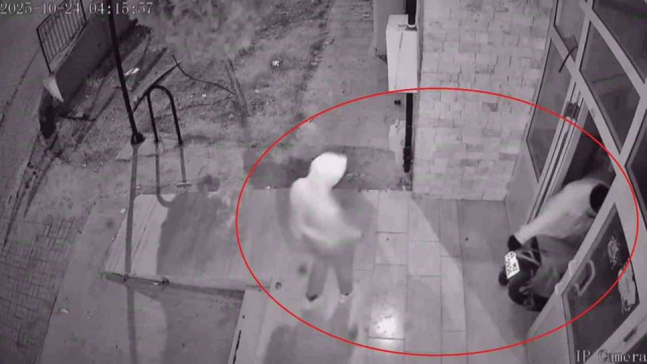 HATAY’IN REYHANLI İLÇESİNDE ELİNİ KOLUNU SALLAYARAK BİNAYA GİREN 2 ŞAHSIN, MOTOSİKLET ÇALIP KAÇTIĞI ANLAR KAMERAYA YANSIDI.
