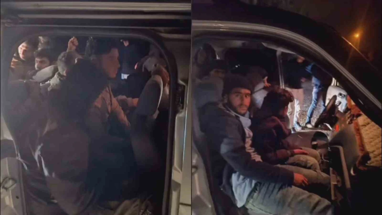 Hafif ticari araca tıka basa doldurulan 13 göçmen yakalandı