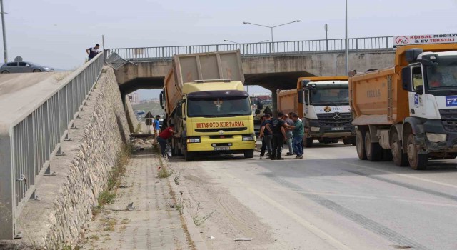 Geçtiğimiz aylarda meydana gelen kazada, Defne ilçesi Çekmece Mahallesi’nde bulunan üst geçitten 31 ADG 545 plakalı hafriyat kamyonu çevre yoluna uçmuştu. Yaklaşık 5 metrelik duvardan uçan kamyonun sürücüsü yaralanmıştı. Kaza anına ait görüntüler kameraya yansıdı. Görüntülerde; yola dökülen sıvıdan dolayı sürücüsünün direksiyon hakimiyetini kaybettiği kamyonun üst geçitten uçtuğu görüldü.