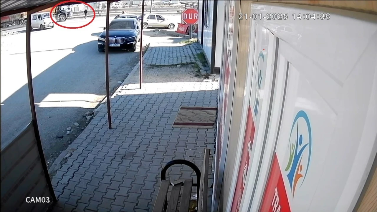 HATAY (İHA) - Hatay'da yolun karşısına geçmeye çalışan yaşlı adama, hafriyat kamyonunun çarptığı anlar güvenlik kamerasına yansıdı.