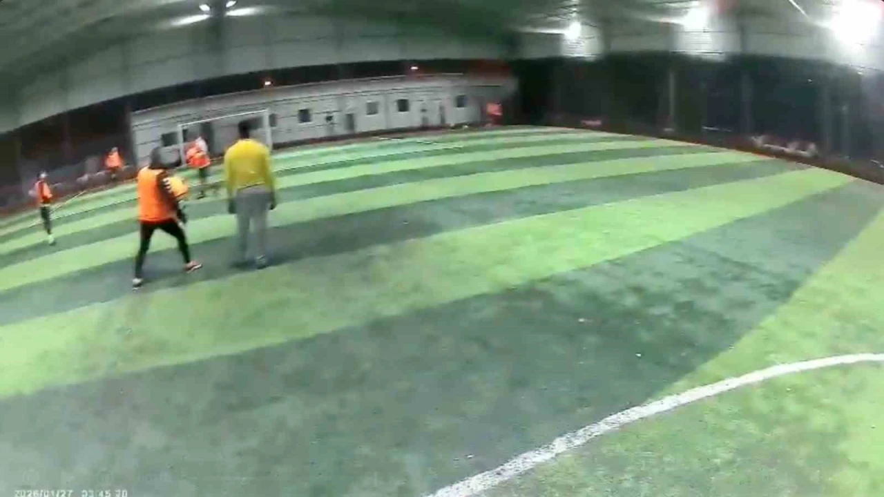 Antalya’da şiddetli fırtına sebebiyle halı sahanın çatısı çöktü. Oyuncuların maç için ısındığı anlarda kopan gürültüyle başlayan panik futbolcuların koşarak sahayı terk etmesiyle bitti. Çatının çökme anı ve futbolcuların sahadan kaçışları aksiyon kamerasına yansırken, olayda şans eseri kimse yaralanmadı.