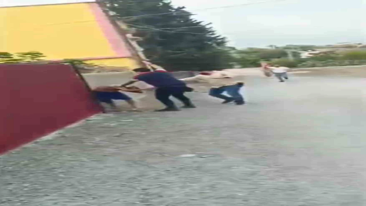 Hapis cezasıyla aranan şahsı yakalayan polislere taşla saldırdılar, o anlar kamerada