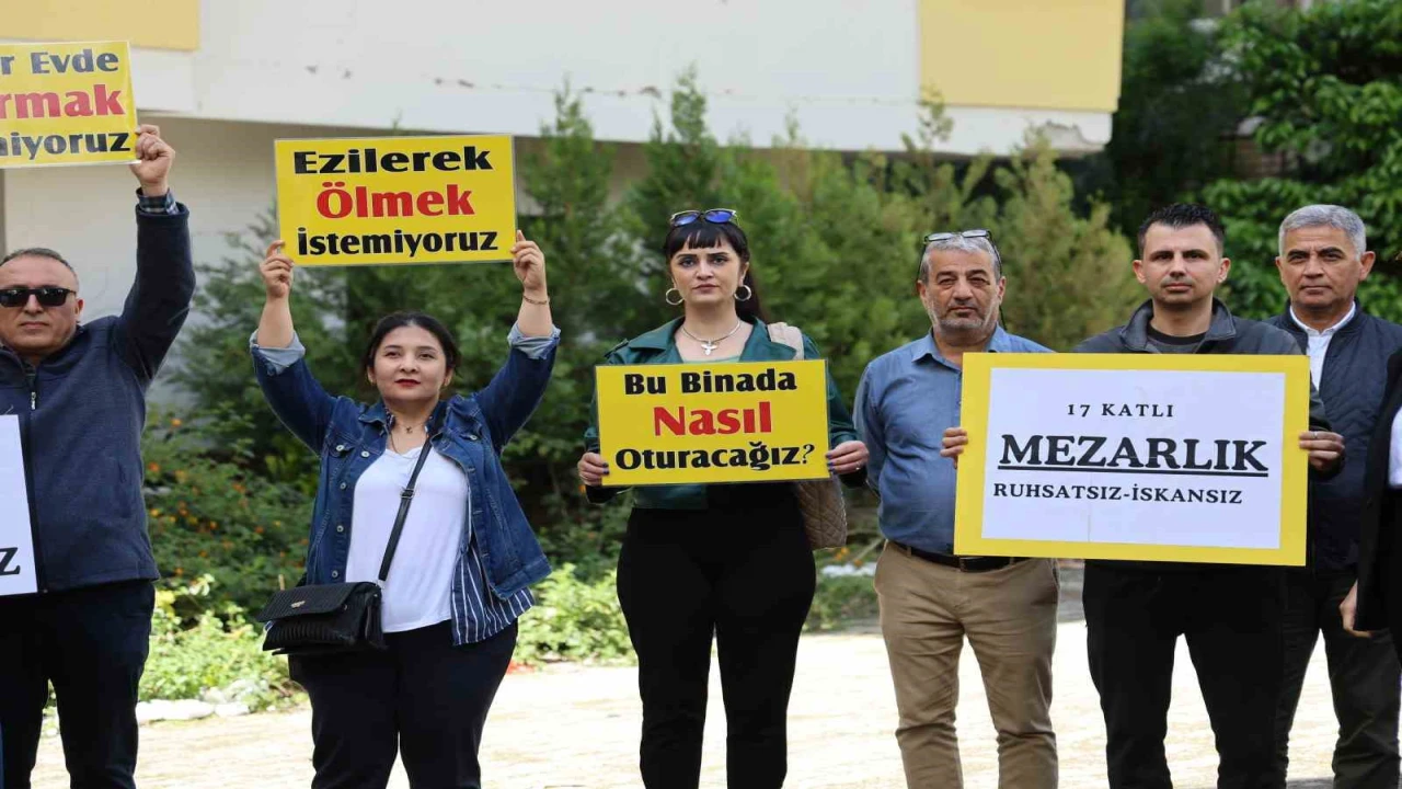 İtiraz süreci devam ederken apartman sakinleri ellerinde "Ezilerek ölmek istemiyoruz", "Yetkililer sesimizi duysun", "Mezar evde oturmak istemiyoruz", "Bir dükkan yüzünden 2 senedir mağduruz", "Enkaz altında kalmak istemiyoruz" yazılı pankartlarla eylem yapıp apartmanlarının bir an önce yıkılmasını talep etti.