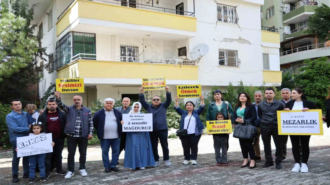 Adana’da 3 kez ’orta hasarlı’ raporu verilen ancak en sonunda bir iş yerinin itirazı üzerine ’az hasarlı’ raporuna çevrilen apartman sakinleri eylem yaptı. Vatandaşlar, evleri Adana’nın en pahalı semtlerinden birinde olmasına rağmen binanın oturulamayacak kadar kötü durumda olduğu için yıkılmasını talep etti. İş yeri ve apartman sakinleri arasında yaşanan anlaşmazlıkta son kararı mahkeme verecek.