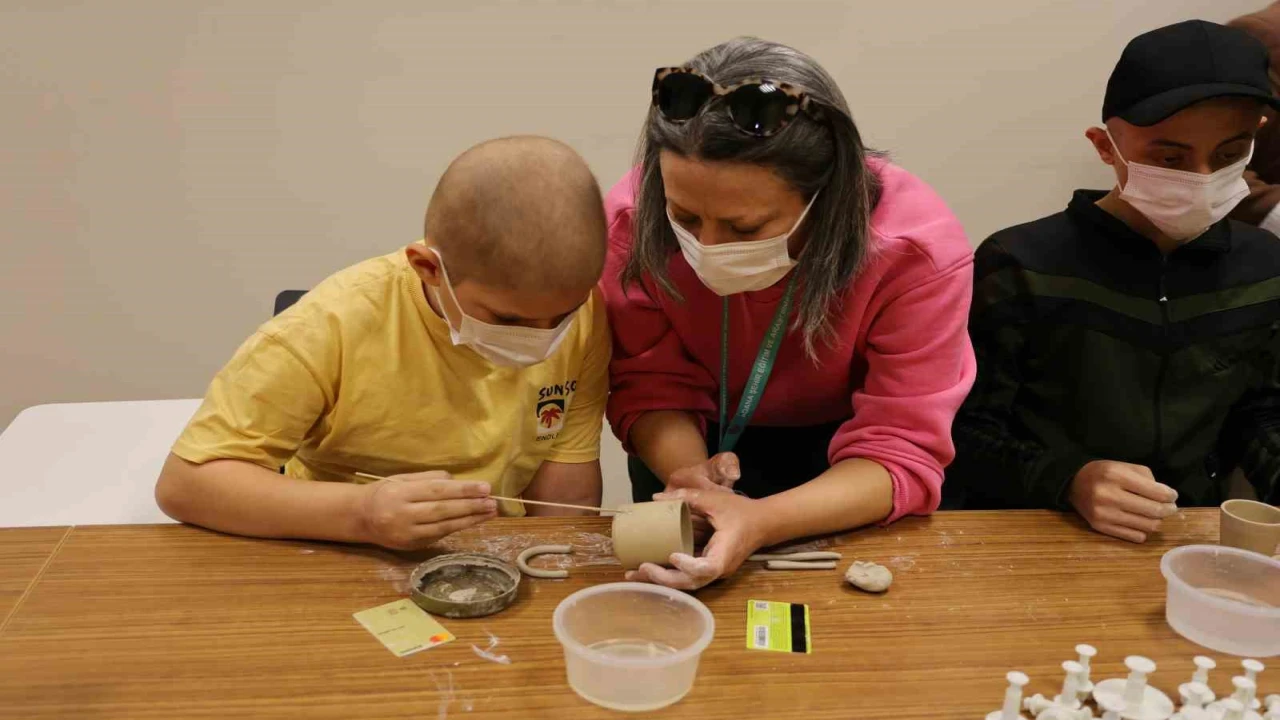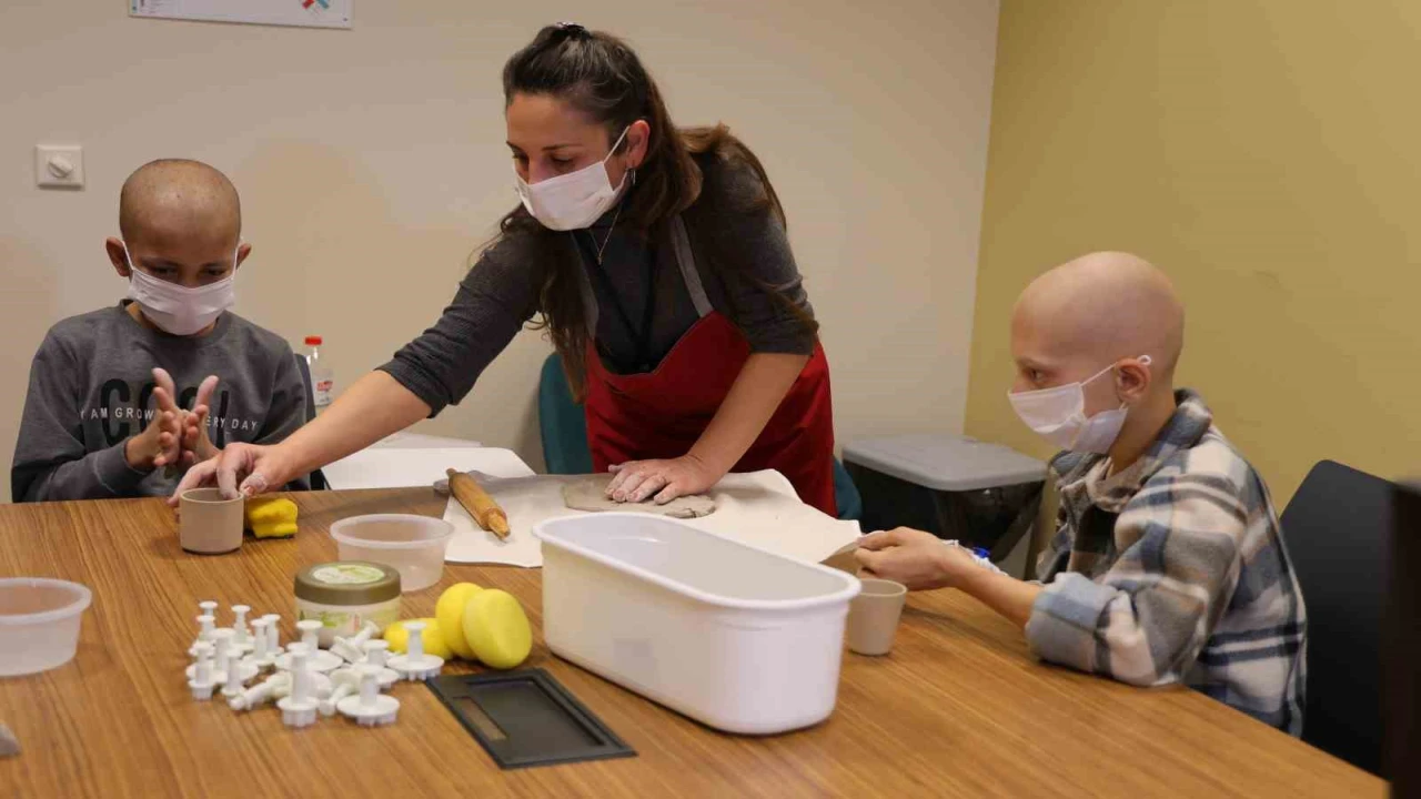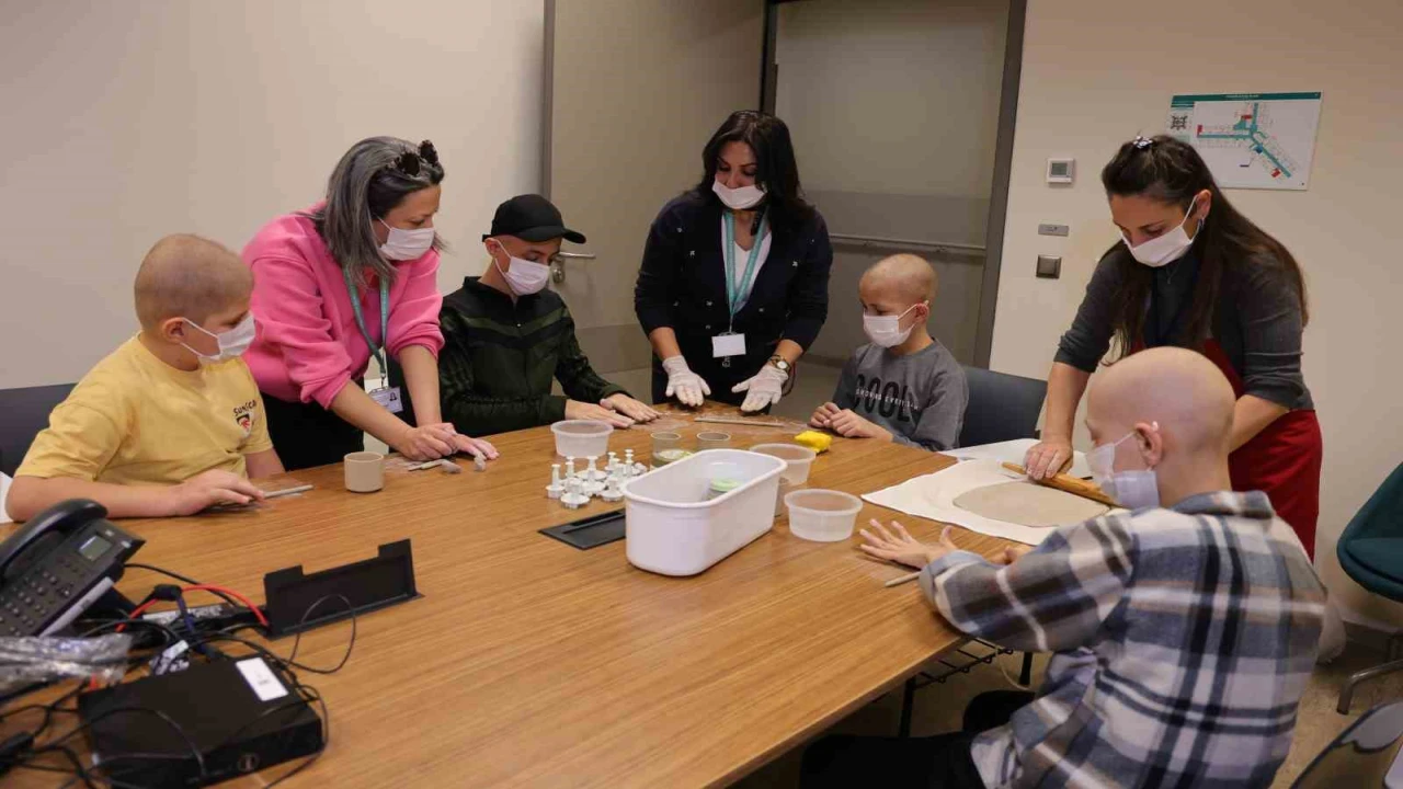 Adana’da yatarak tedavi gören ve sağlık problemleri nedeniyle örgün eğitime katılamayan çocuklar, atölye çalışmalarında el becerilerini geliştiriyor.