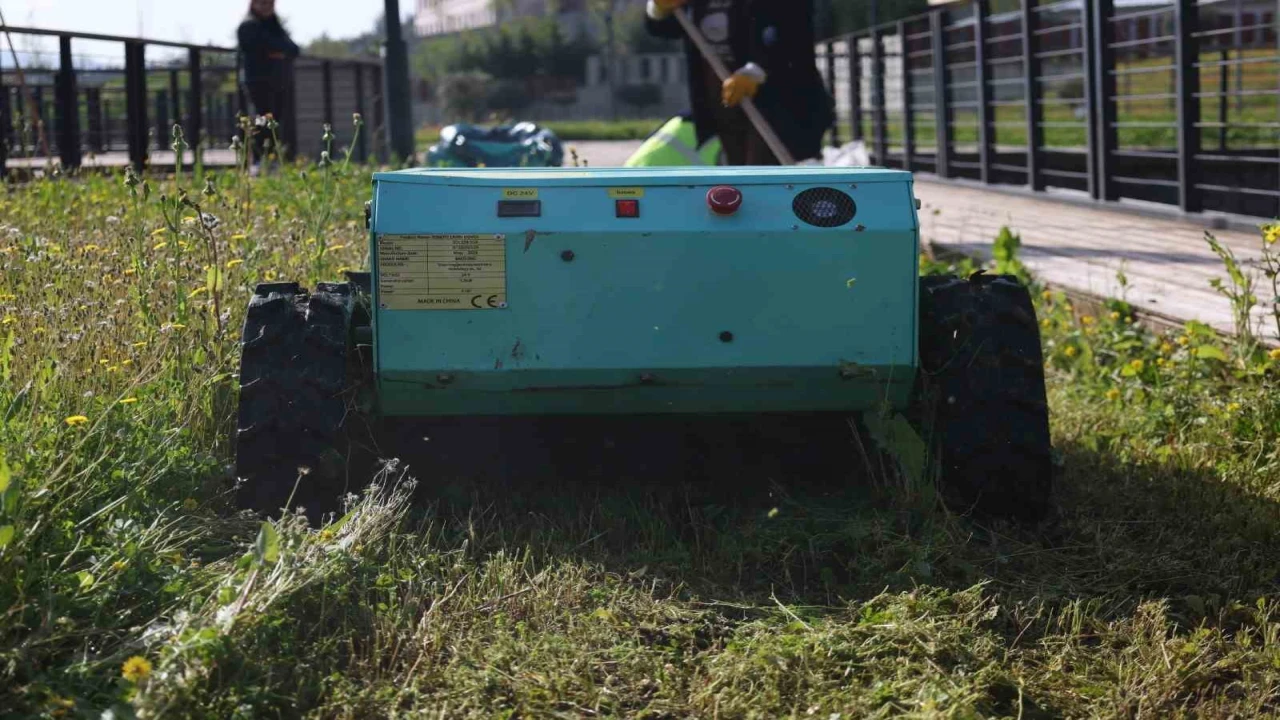 Bu kapsamda Park Bahçe ve Yeşil Alanlar Dairesi Başkanlığı bünyesine ot biçme robotları dahil edildi.