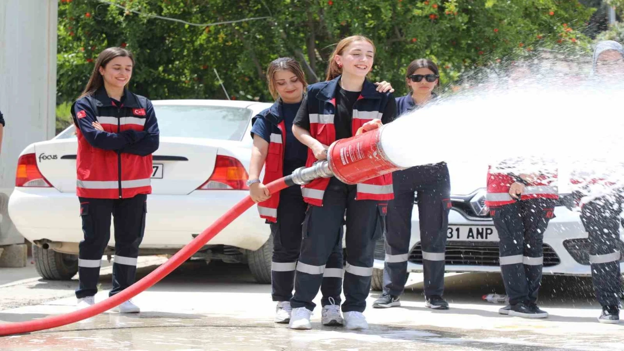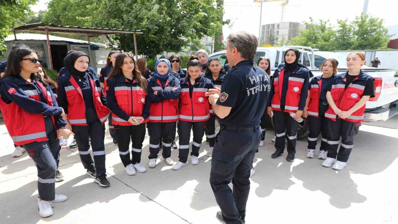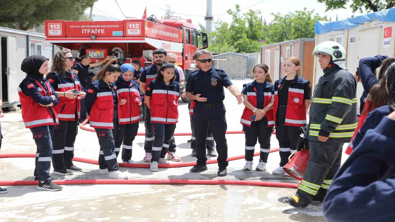 Hatay Büyükşehir Belediyesi itfaiye ekipleri, üniversite öğrencilerine yangın eğitimi verdi.