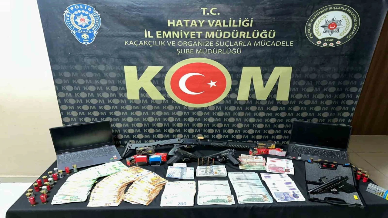 Hatay Cumhuriyet Başsavcılığı koordinesinde Hatay Emniyet Müdürlüğü görevlilerince "Rüşvet ve 5607 sayılı Kaçakçılıkla Mücadele Kanunu" kapsamında 46 şahsa yönelik 17 Şubat günü Hatay merkezli; İstanbul, Antalya, Adana, Mersin, Şanlıurfa, Diyarbakır ve Kilis illerinde eş zamanlı operasyon düzenlendi. Operasyon kapsamında 44 şahıs gözaltına alınırken, 2 şahsın yurt dışında olduğu tespit edildi. Yapılan ev ve iş yeri aramalarında; 41 adet cep telefonuna incelenmek üzere el konuldu. Ayrıca 76 bin 985 ABD doları, 52 bin 130 Euro, 87 bin 310 TL, 3 bin 100 Suudi Arabistan Riyali, 1 ruhsatsız tabanca, 4 adet AK-47 fişeği, 284 adet 9x19 mm çapında fişek, 1 tüfek, 2 kurusıkı tabanca ve 56 adet 9 mm fişek ele geçirildi.