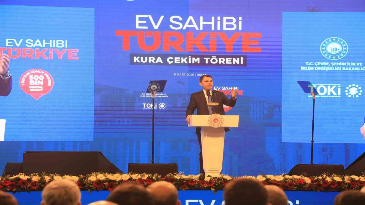Hatay’da 500 Bin Sosyal Konut Projesi’nde 13 bin 289 konutun kura çekim törenine katılan Çevre, Şehircilik ve İklim Değişikliği Bakanı Murat Kurum, "Türkiye olarak bölgemizde ve dünyada; hiçbir zaman kavganın, kanın ve acının tarafında değil, daima sulhün, istikrarın ve huzurun tarafındayız" dedi.