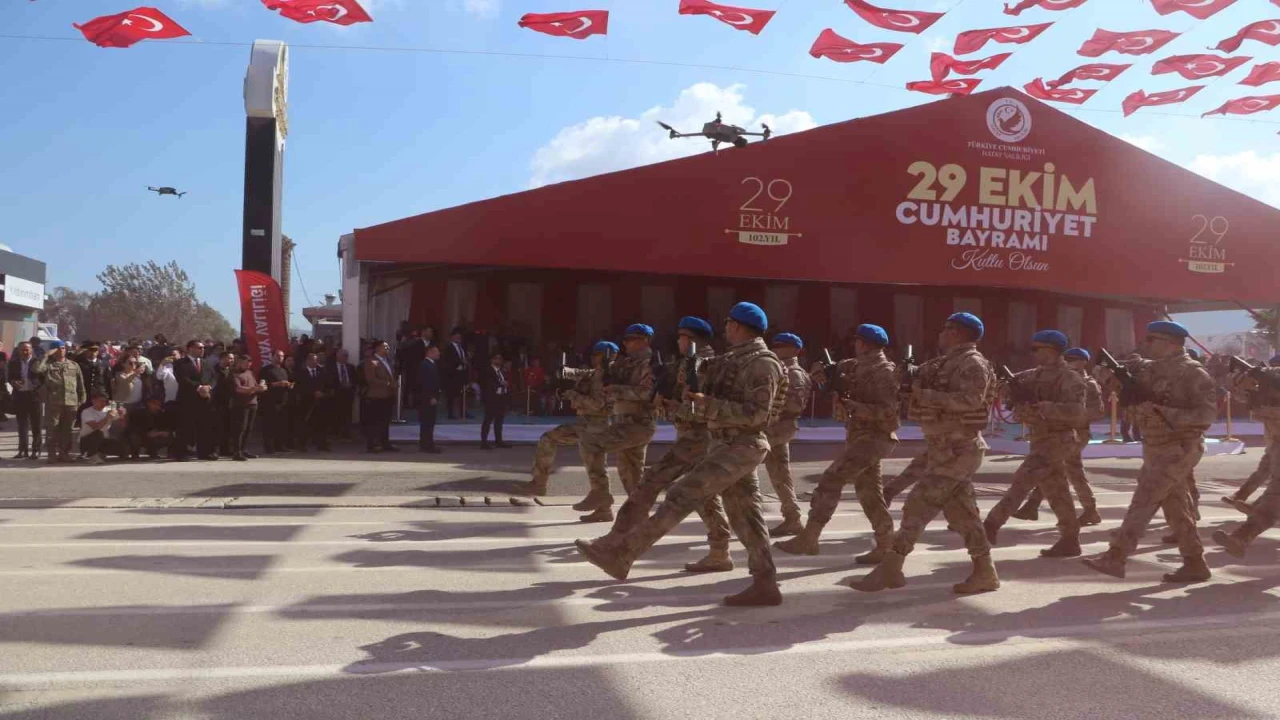 29 Ekim Cumhuriyet Bayramı töreni; Antakya ilçesi Atatürk Caddesi üzerinde gerçekleşti. Tören; Hatay Valisi Mustafa Masatlı, Garnizon Komutanı Tuğgeneral Ali Mete ve Büyükşehir Belediye Başkanı Mehmet Öntürk’ün askeri araçla vatandaşları selamlamasıyla başladı.