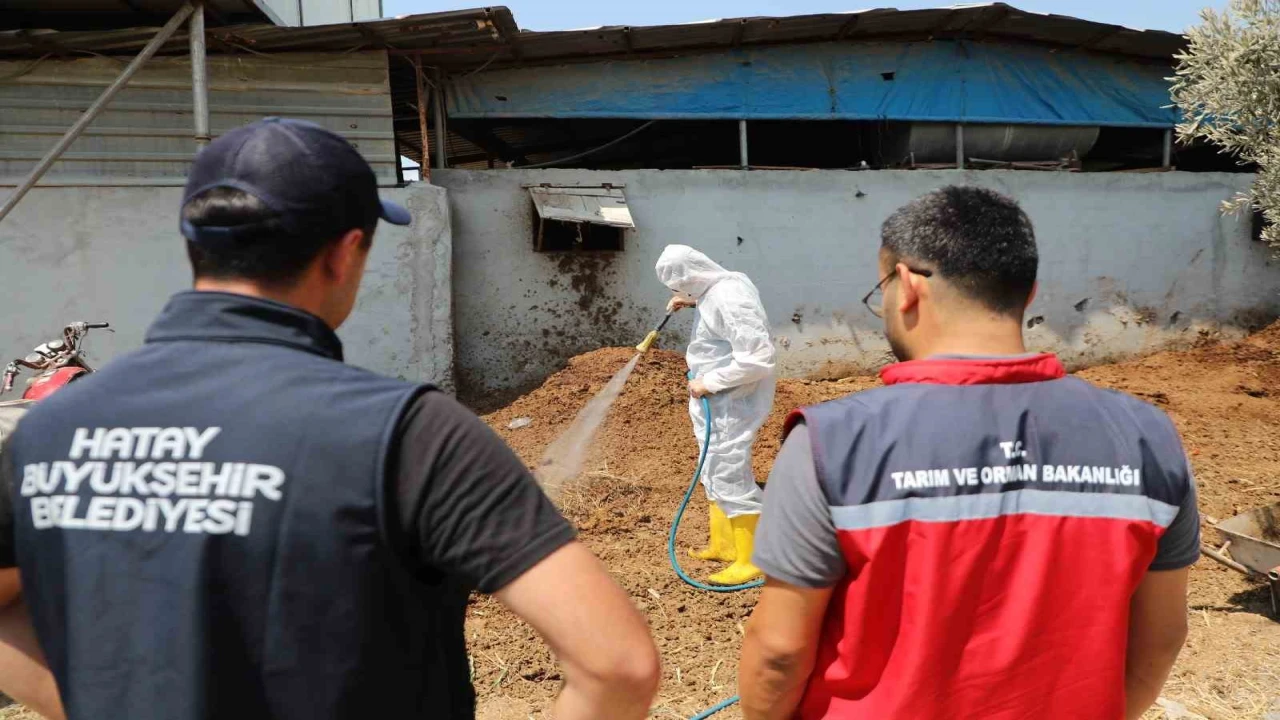 İlaçlama ekipleri özellikle Erzin, Dörtyol, Arsuz ve Samandağ ilçelerinde, hayvan gübresi bulunan alanlar başta olmak üzere sineğin üreme ve konaklama noktalarında ilaçlama çalışmaları gerçekleştiriyor.