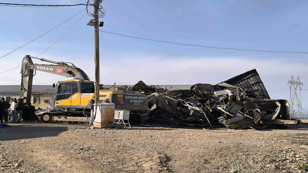 HATAY (İHA) - Hatay'da alevlere teslim olan şantiye alanındaki konteyner yatakhane kullanılmaz hale geldi.