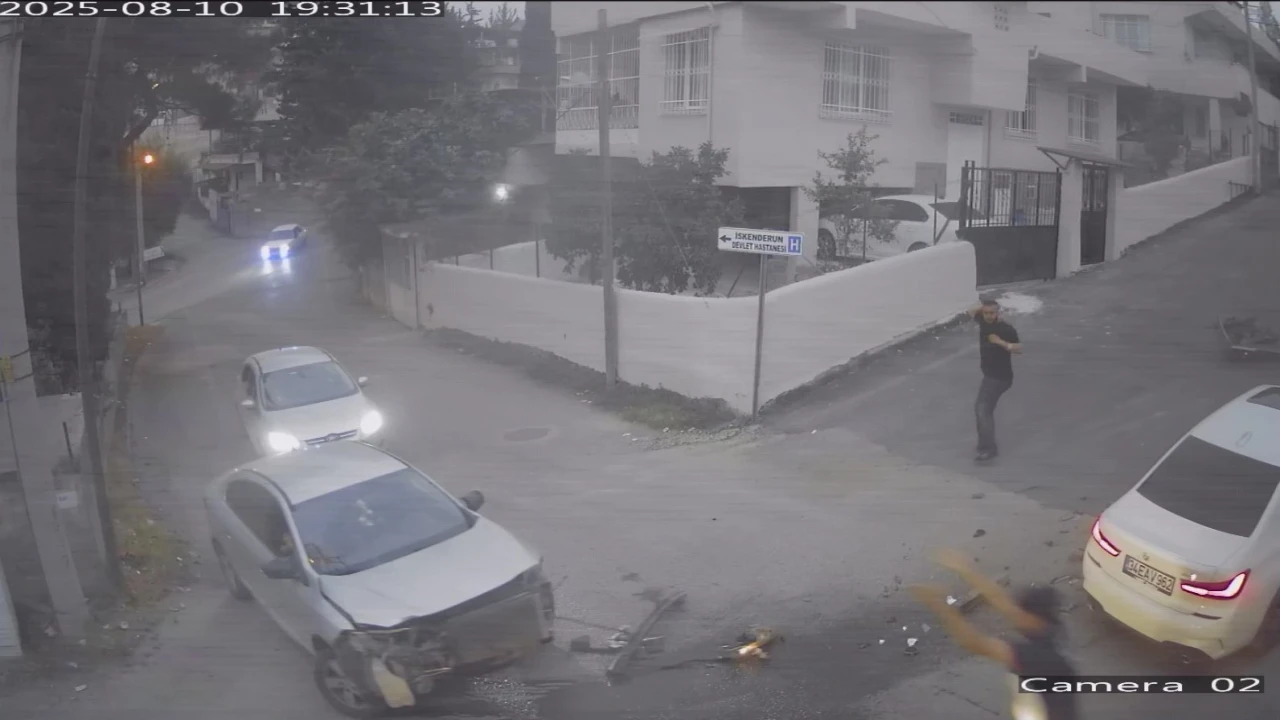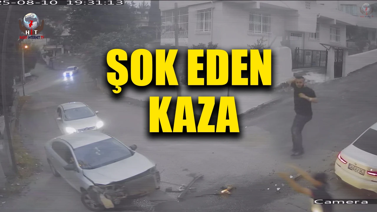 Kaza sonrası çarpışmanın etkisiyle şok yaşayan araçtaki şahsın o anları kameraya yansıdı.