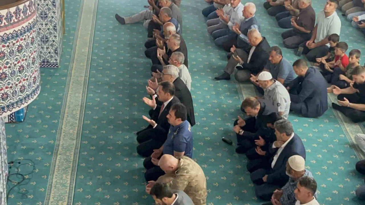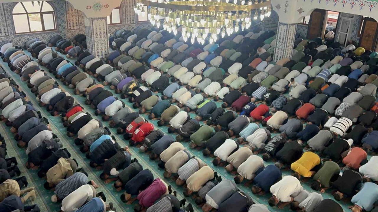 Depremin vurduğu Hatay’da afetzede vatandaşlar, bayram namazlarını depremde yıkılan ve yeniden yapılan Hacı Cuma Kahraman Camii’nde kıldılar.