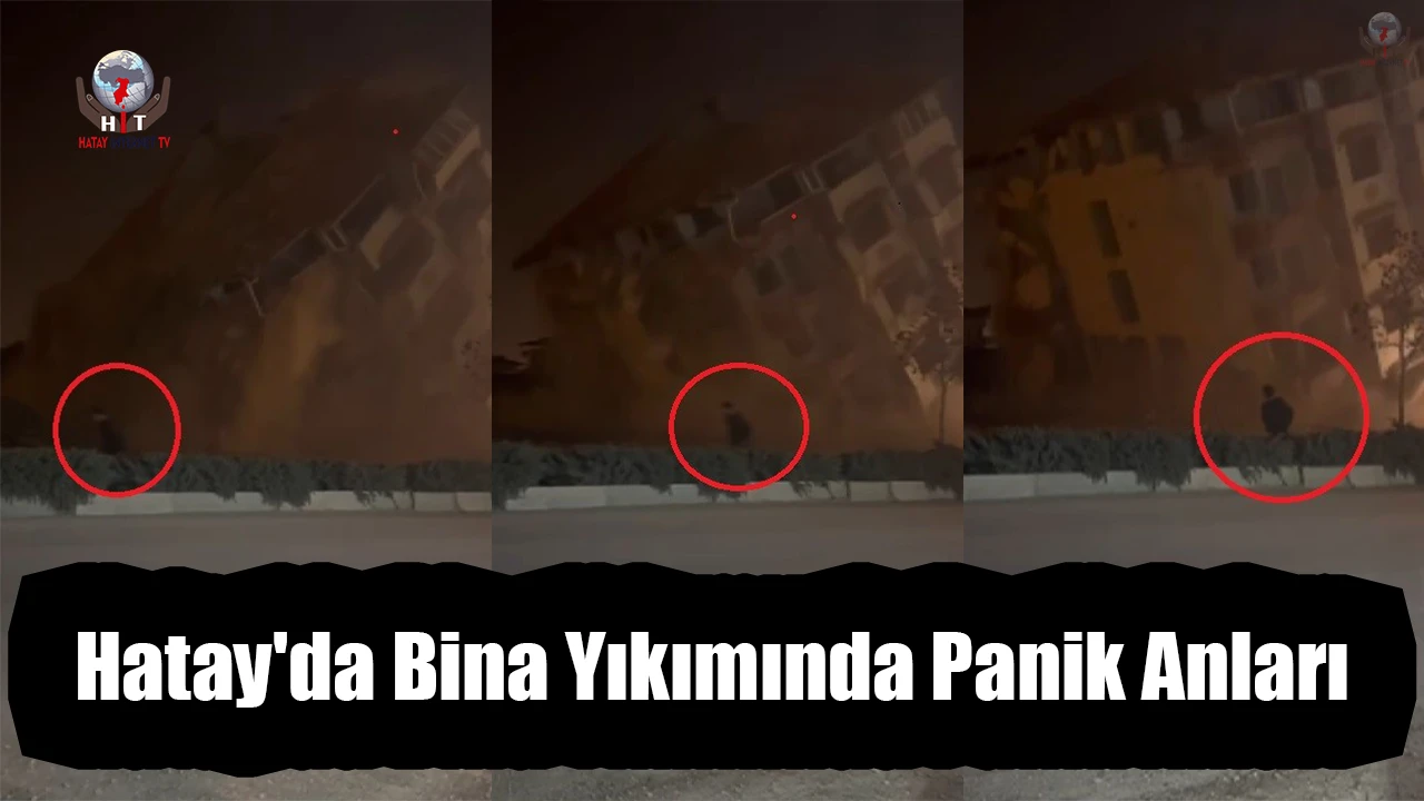 HATAY (İHA) - Hatay'ın Defne ilçesinde 6 katlı binanın iş makinesinin darbesiyle kontrollü olarak yıkıldığı esnada panik yaşayan vatandaşın kaçtığı anlar kameraya yansıdı.