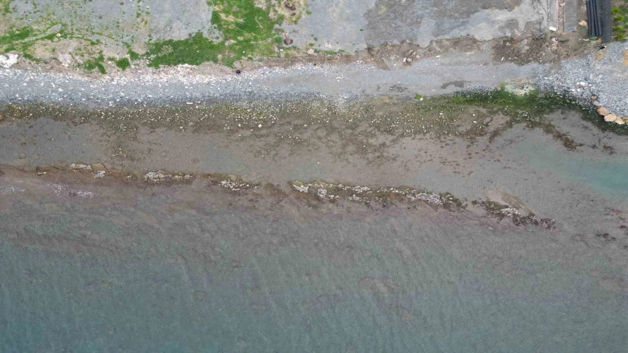 HATAY (İHA) - Hatay'ın Arsuz ilçesinde yaşanan 20 metre deniz çekilmesi dron ile havadan görüntülendi.